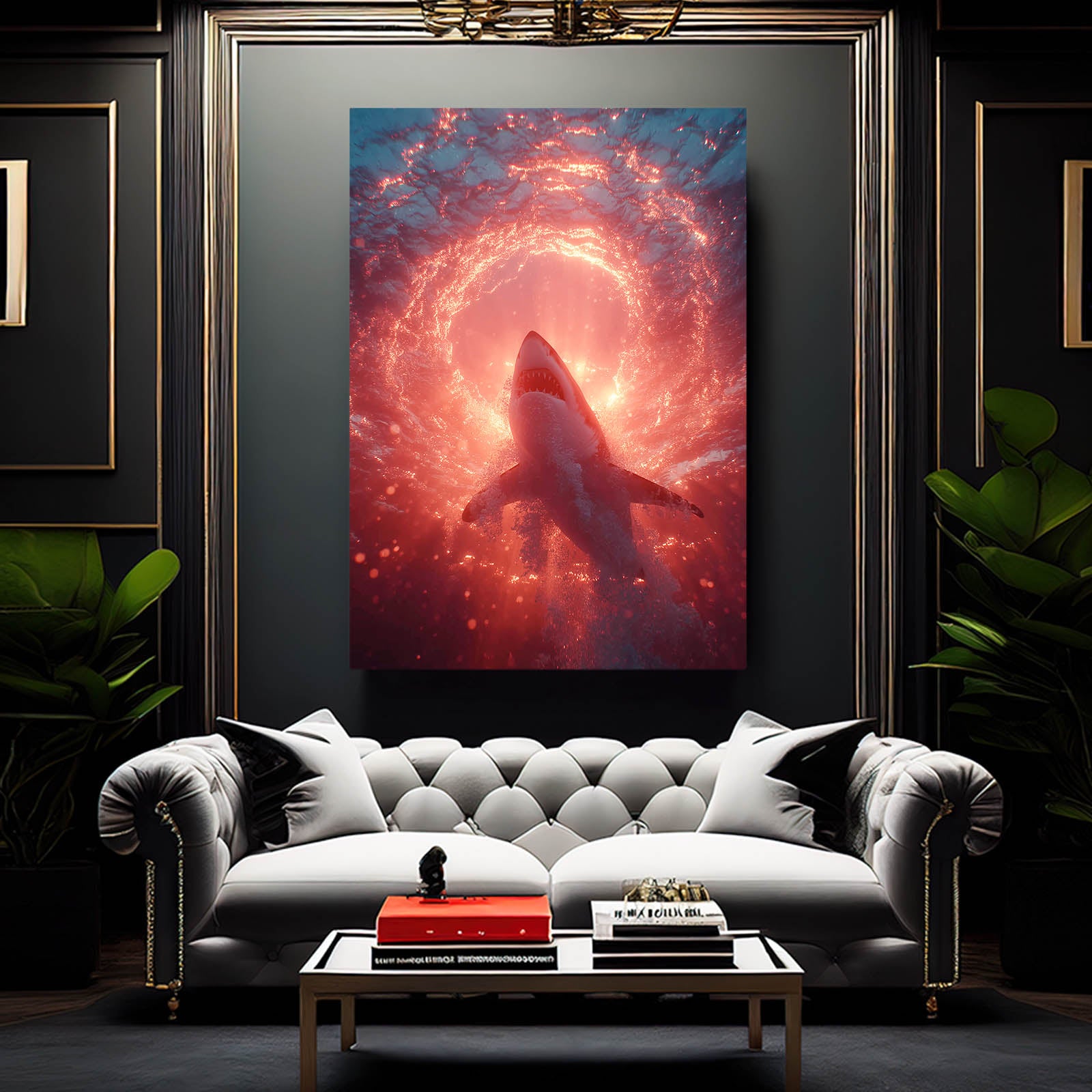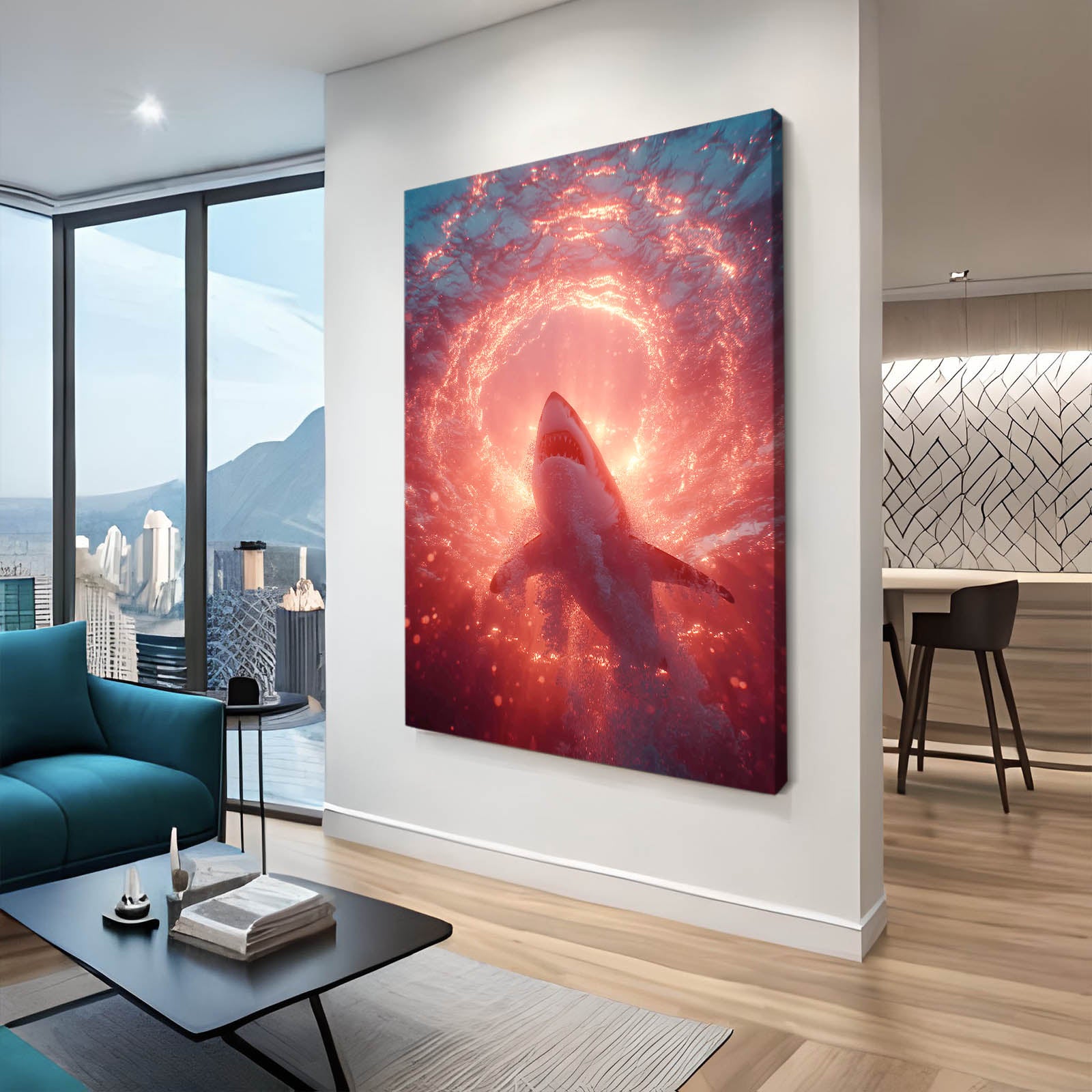 If this powerful circular energy speaks to your space, explore more visually striking marine creations by visiting our Shark Art Collection.