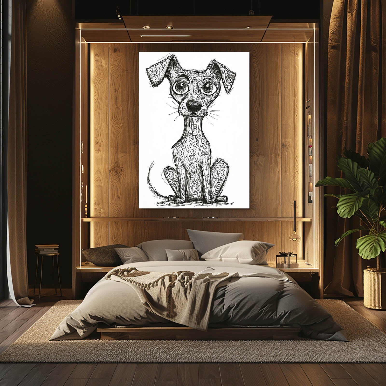The Black And White Dog Artwork is a stunning piece that captures the essence of a dog's personality through expressive, minimalist strokes. Its striking black and white contrast makes this artwork the perfect addition to any space, whether you're looking for a modern touch in your living room or a serene atmosphere in your bedroom. The dog’s captivating eyes and playful expression will instantly draw attention, making it a delightful focal point for any room.