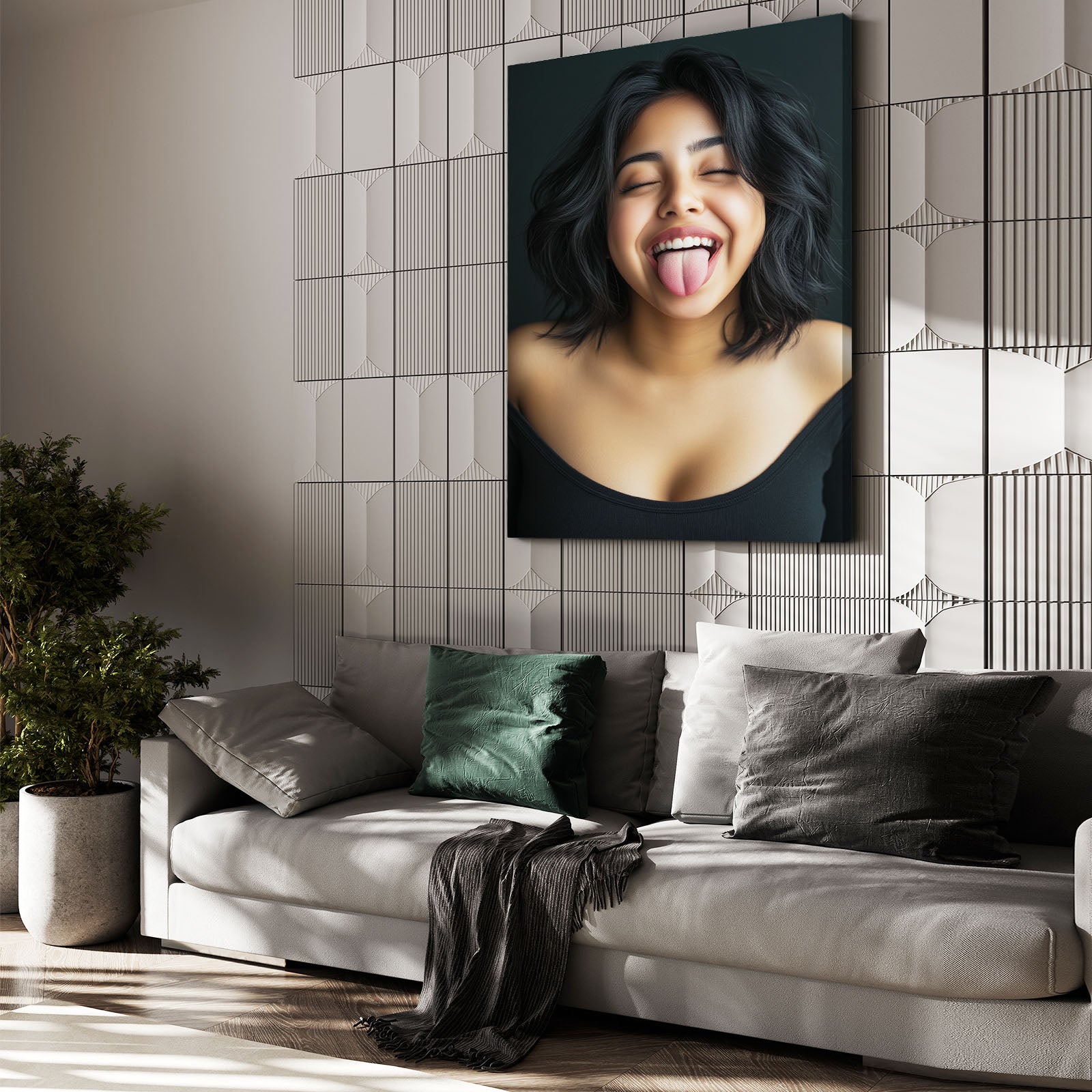 Girl Erotic Artwork brings an irresistible mix of fun, freedom, and feminine allure into one iconic image. With her eyes closed and tongue playfully out, this captivating subject radiates unapologetic self-expression and confidence.
