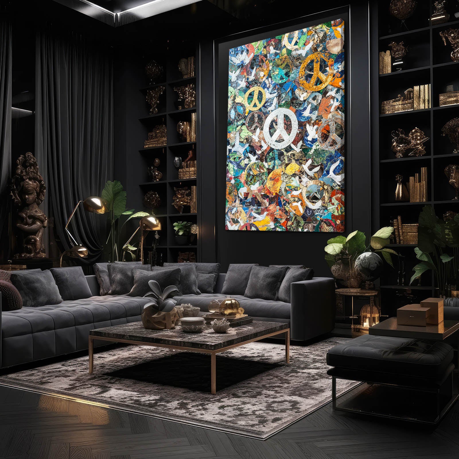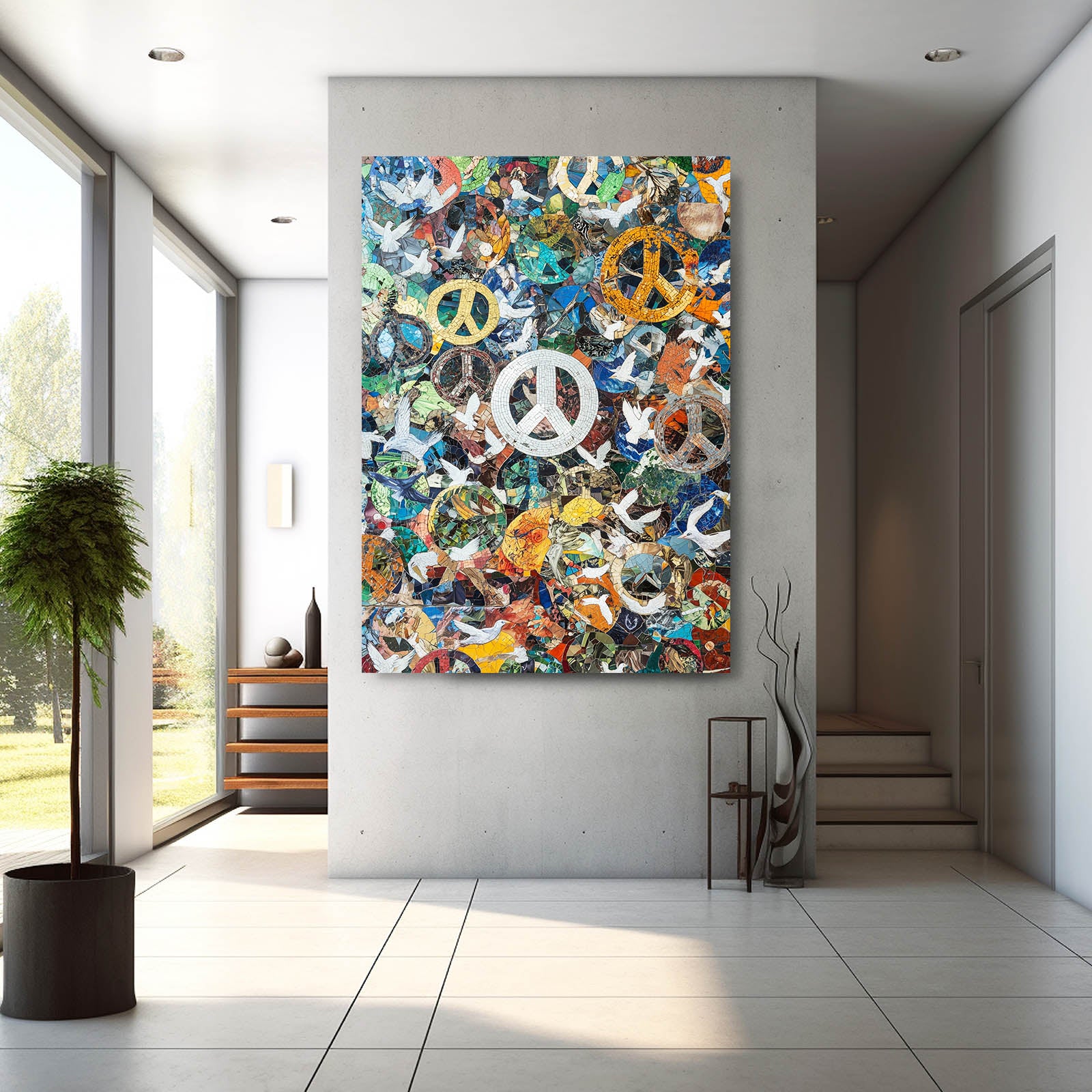 Imagine this bold and energetic piece gracing your home or office, where it can spark conversations and inspire positive energy. The vivid colors and dynamic design will transform any space, while the peaceful imagery evokes a sense of calm and unity. This is the perfect artwork for anyone looking to make a meaningful statement in their space.