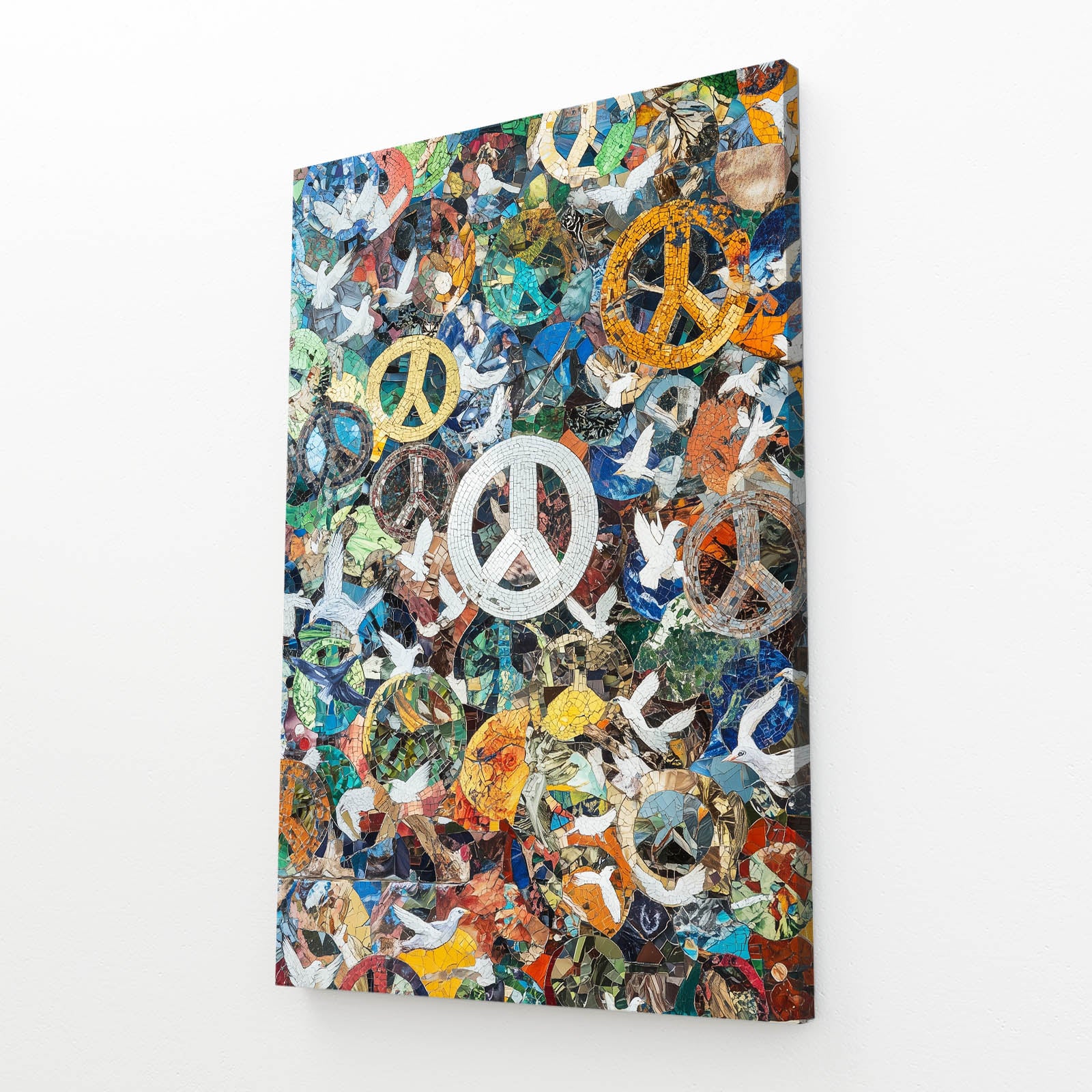 The Peace Art Graffiti brings a modern and vibrant twist to the traditional peace symbol. This artwork features a beautiful mosaic of peace signs intertwined with white doves, creating a powerful visual of harmony and hope. The colorful background, full of rich hues and textures, symbolizes the diverse paths to peace and the unity of all cultures coming together.