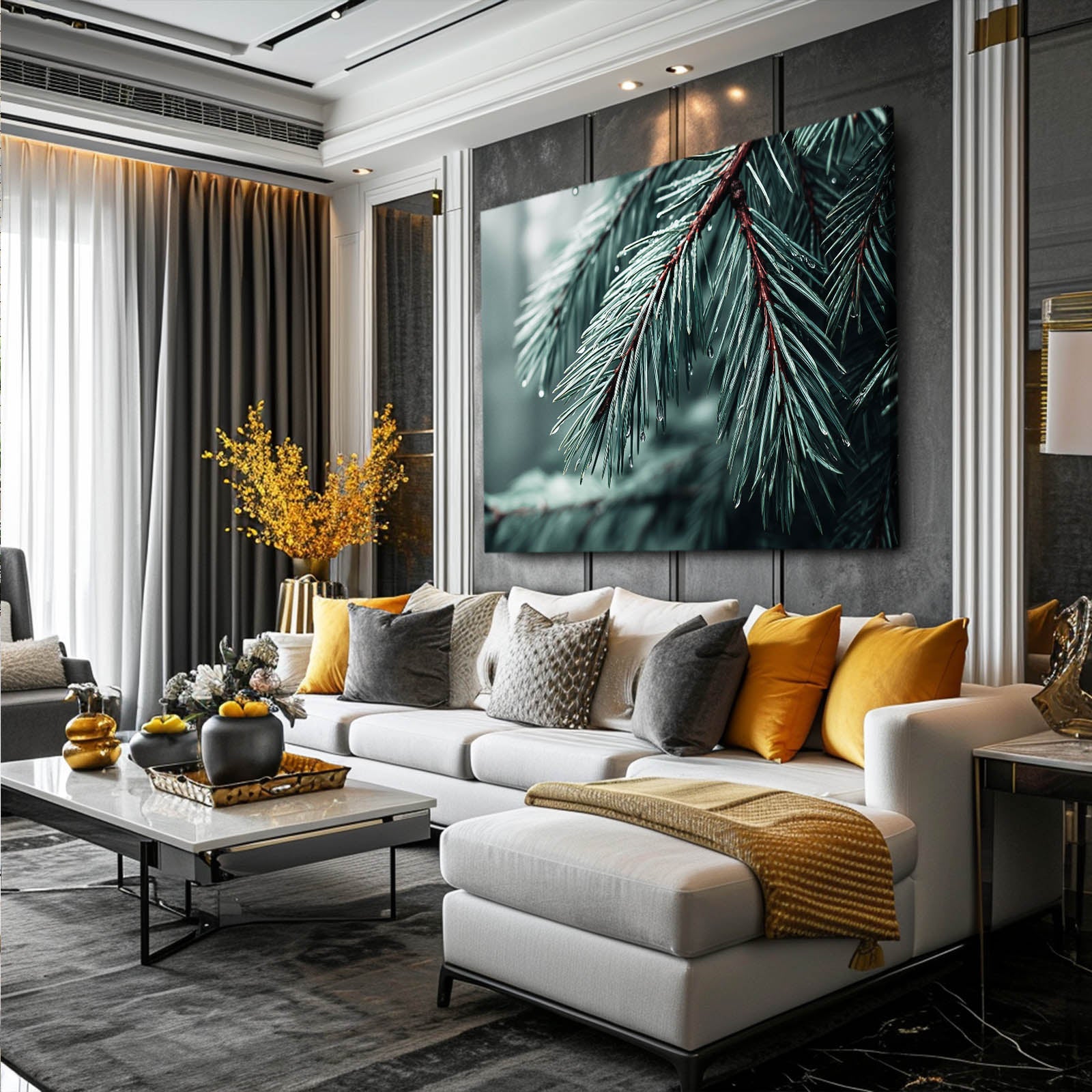 Delicate and timeless, this Tree Photography Wall Decor captures the essence of nature’s calm beauty with stunning precision. The close-up view of evergreen branches, adorned with dewdrops glistening like crystal pearls, evokes feelings of serenity and renewal.