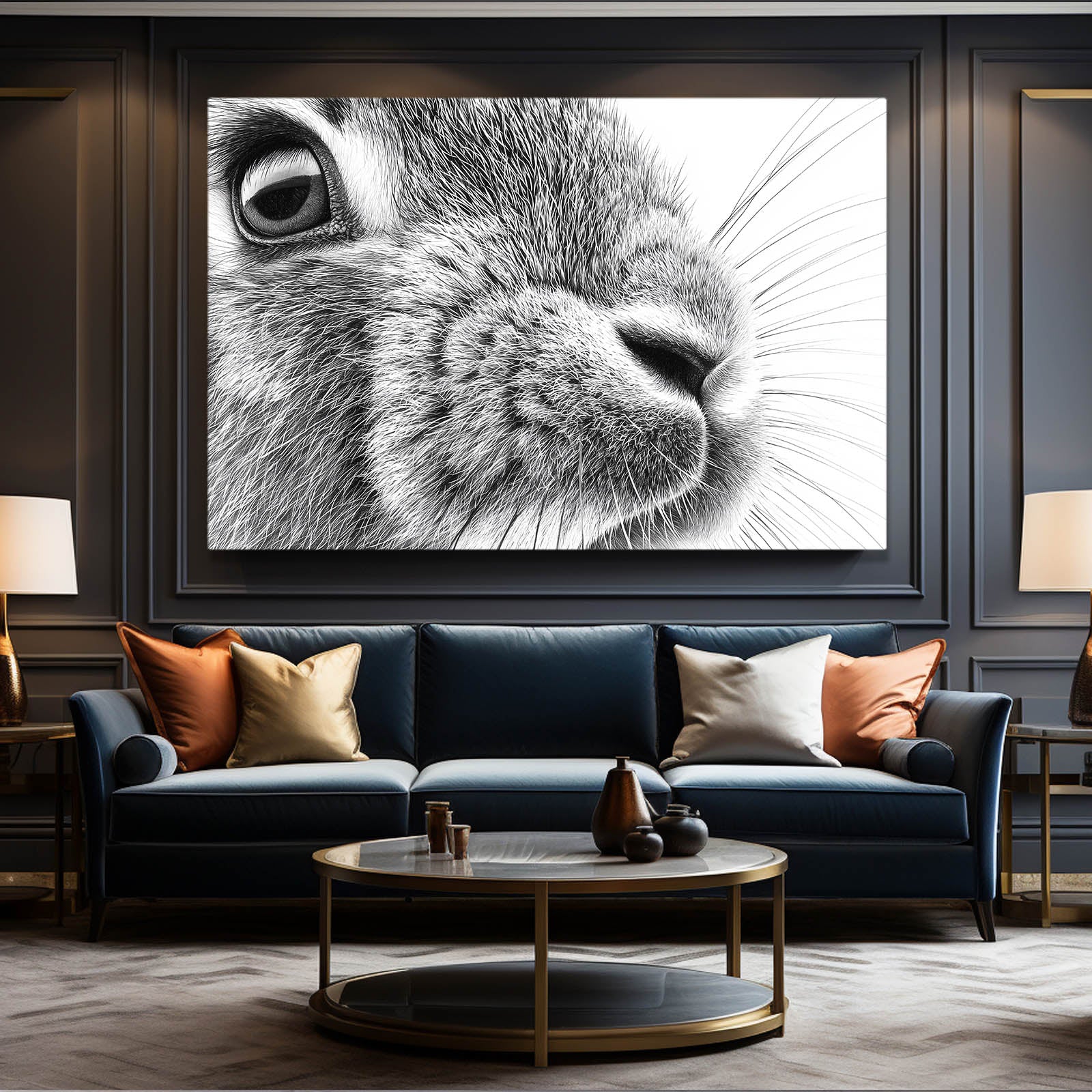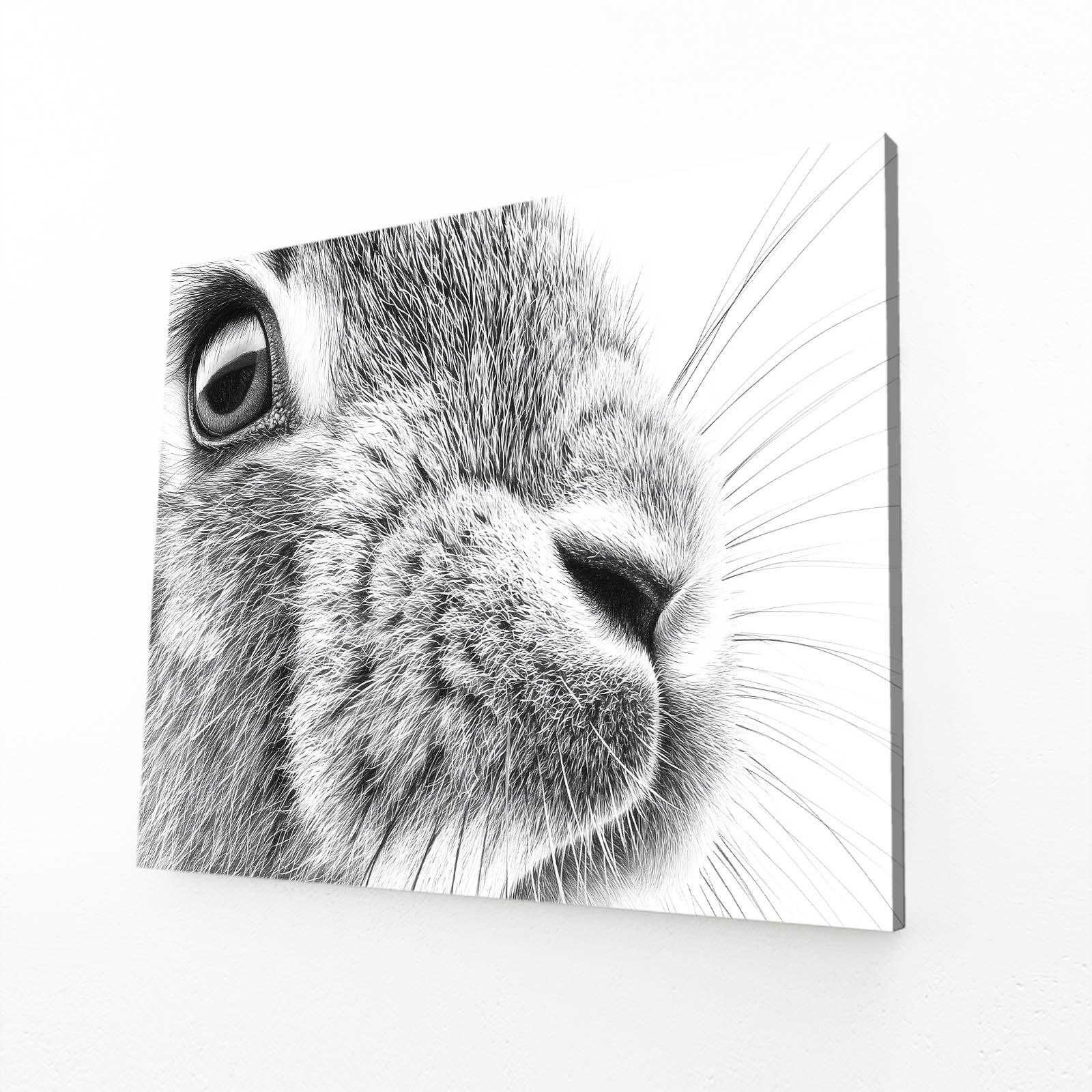 Allow the Bunny Wall Art Black And White to gently capture your attention with its soft contrast and refined elegance. The close-up composition creates a feeling of calm focus, guiding the eye toward the rabbit’s expressive features and inviting a moment of quiet appreciation.