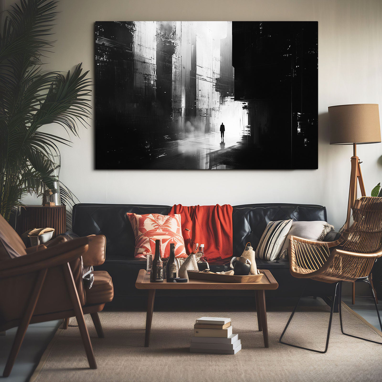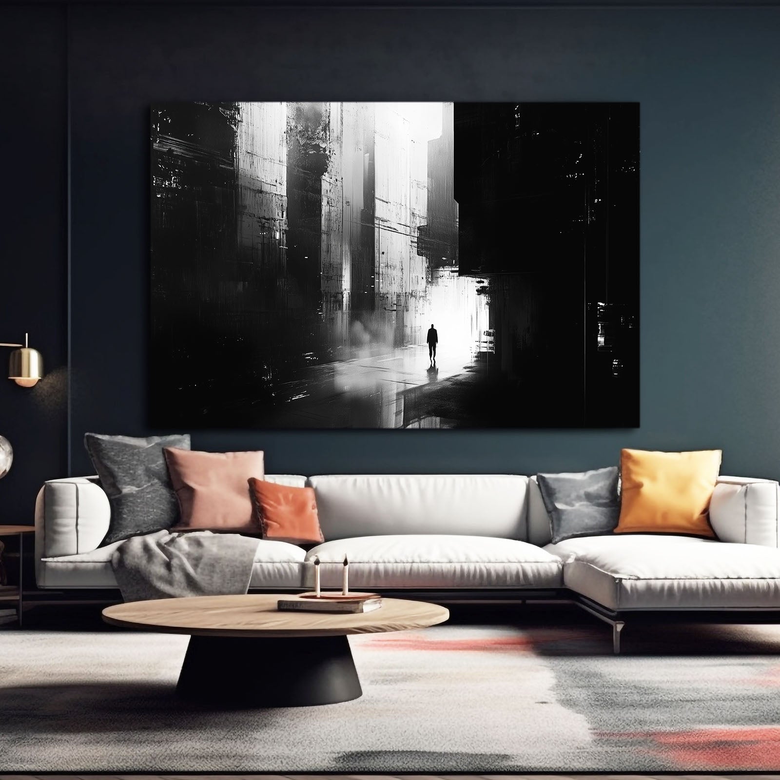 Step into a world of mystery and contemporary elegance with Black Abstract Art Modern. This powerful piece merges the intensity of black with the stark contrast of light, creating an atmosphere of both drama and calmness. Its abstract nature invites you to interpret its sharp lines and soft gradients in your own unique way.