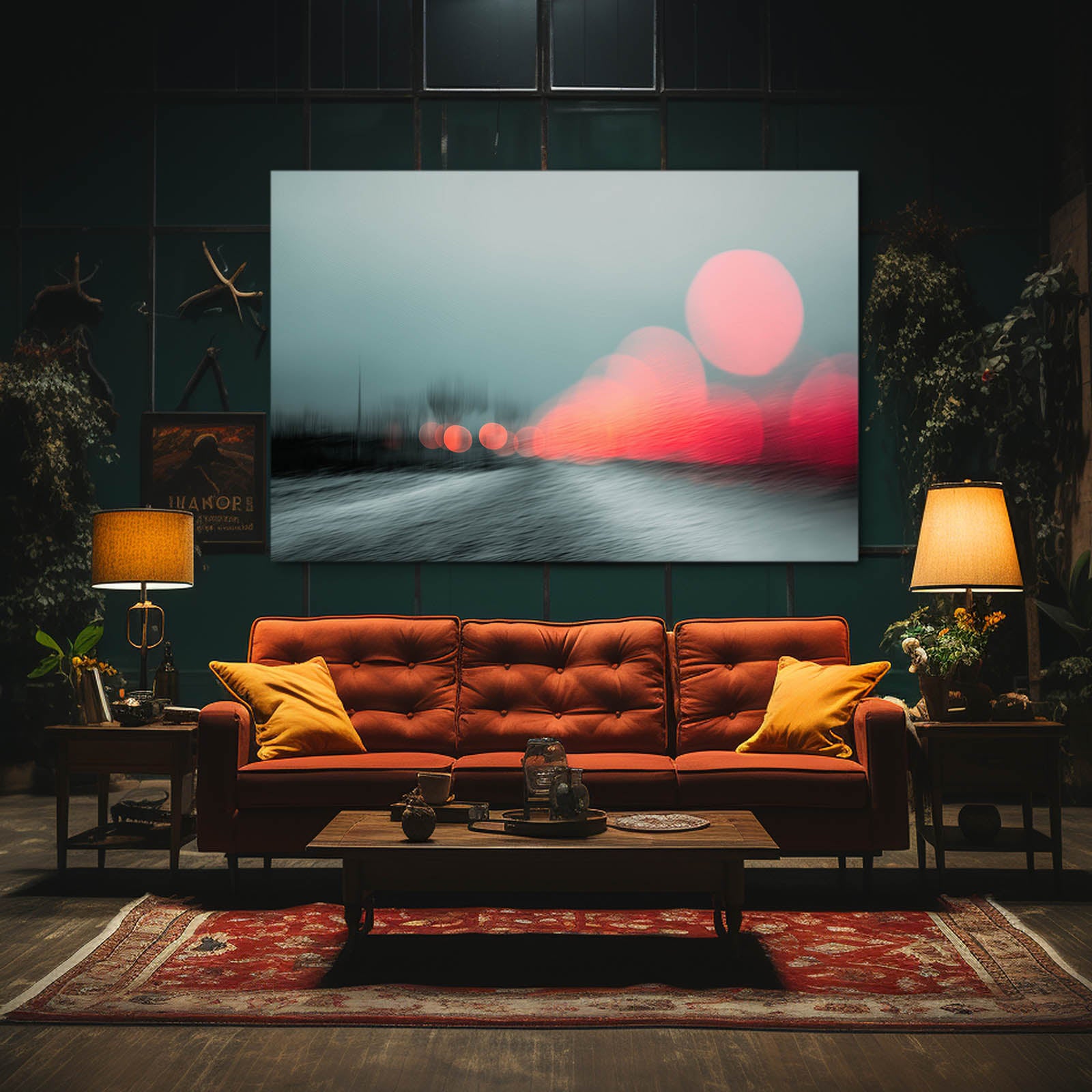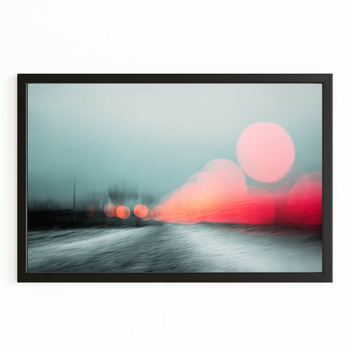 The gentle blur of lights and color gradients creates a sense of depth and movement, offering the perfect balance between modern minimalism and poetic artistry. Its subtle tones of blue and coral invite feelings of calm, nostalgia, and inspiration every time you look at it.