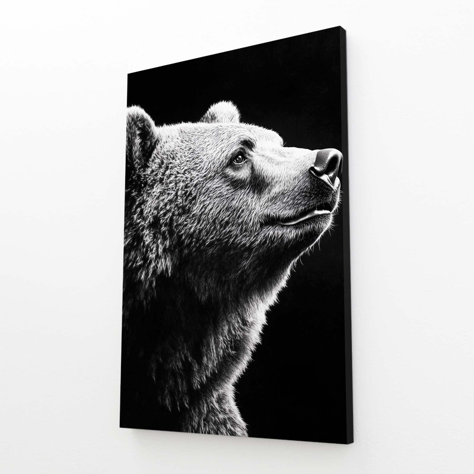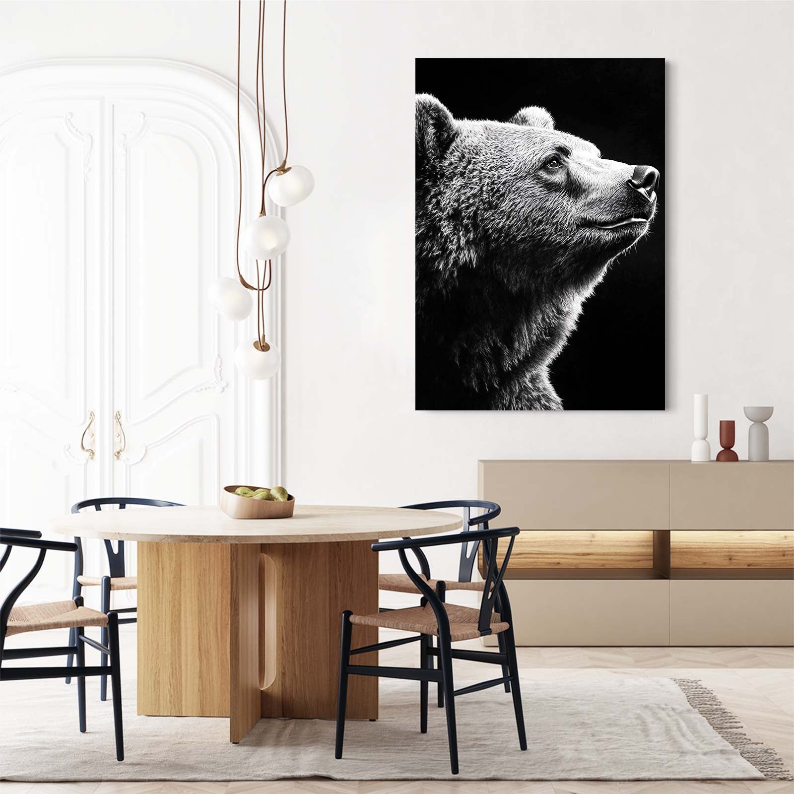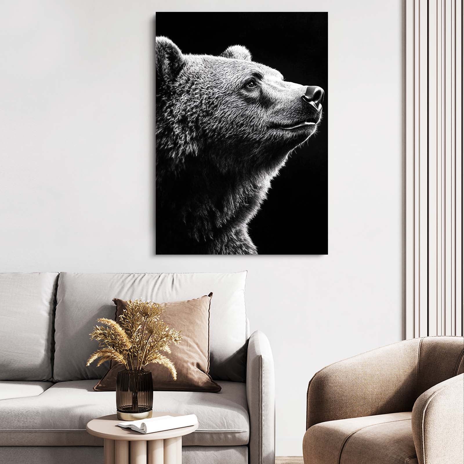 Immerse yourself in the raw majesty of nature with the captivating Photography Bear Wall Art. The intense gaze of this majestic creature stands out in sharp black-and-white contrast, bringing a touch of wilderness into any space. Its powerful presence is sure to inspire awe and admiration in all who see it.