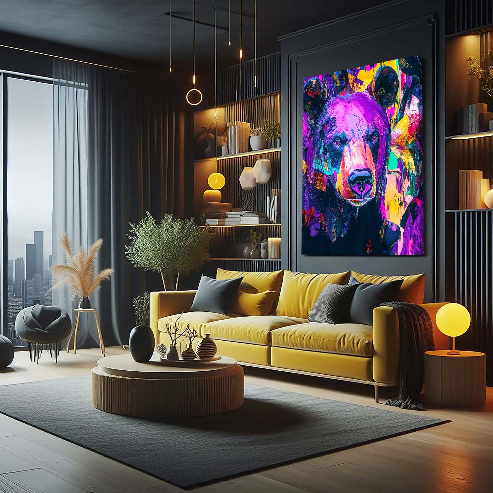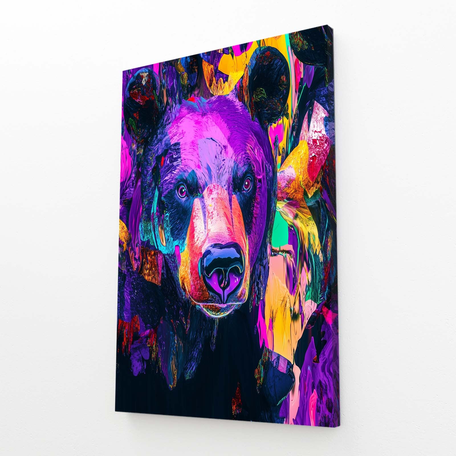 Immerse yourself in the striking beauty of the Purple Bear Wall Art. This piece features an intense and vibrant bear, set against a backdrop of dynamic colors that bring out its bold presence. The rich purple hues and intricate details make this artwork a truly captivating addition to any space.