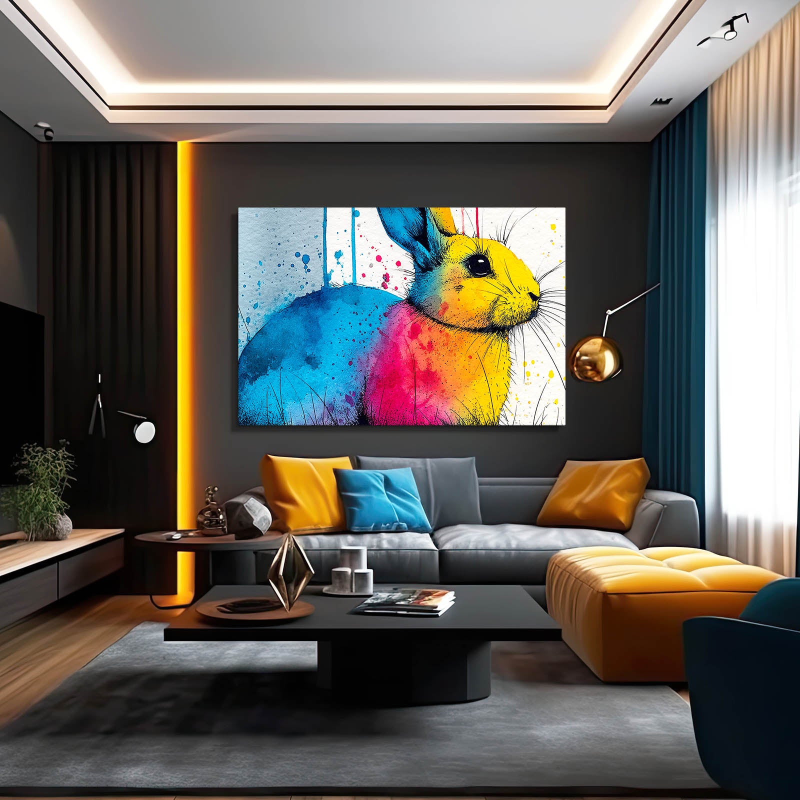 Bring a refreshing burst of color into your home with the Bunny Rabbit Print, created to instantly lift your mood and transform your surroundings. The vivid fusion of blue, yellow, and pink tones creates an energy that feels both uplifting and wonderfully imaginative. Designed to spark a sense of creativity and positivity, this artwork encourages a warm emotional connection the moment you see it. Its charming details and expressive bunny character invite a feeling of comfort and happiness into any room.