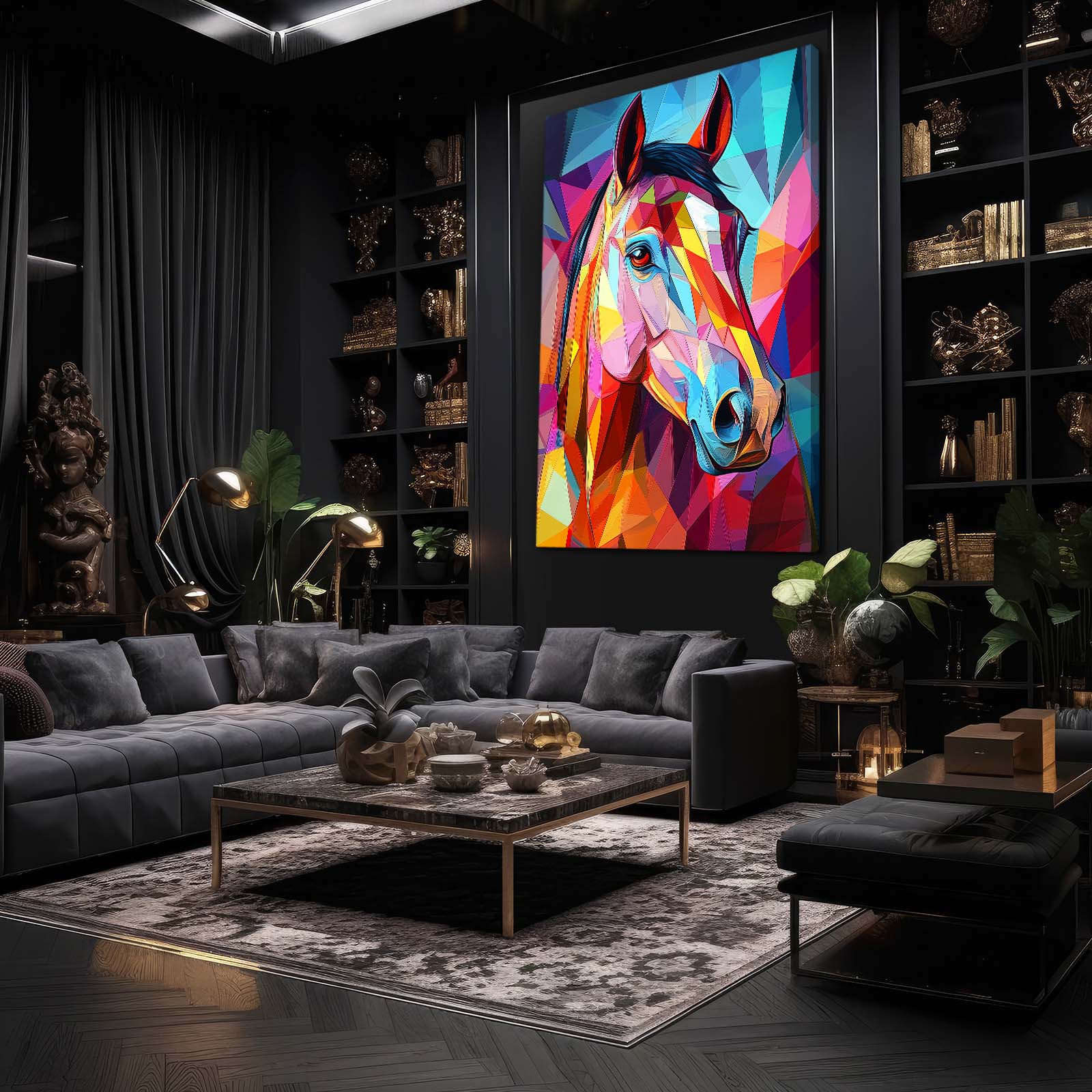 Brighten up your space with the captivating Colored Horse Art, a stunning piece that merges vibrant hues with the majestic presence of a horse. The geometric design enhances the horse’s beauty, creating a visual masterpiece that will immediately capture attention in any room. Let the rich and bold colors bring a burst of energy to your walls, making it an ideal choice for contemporary and artistic settings.