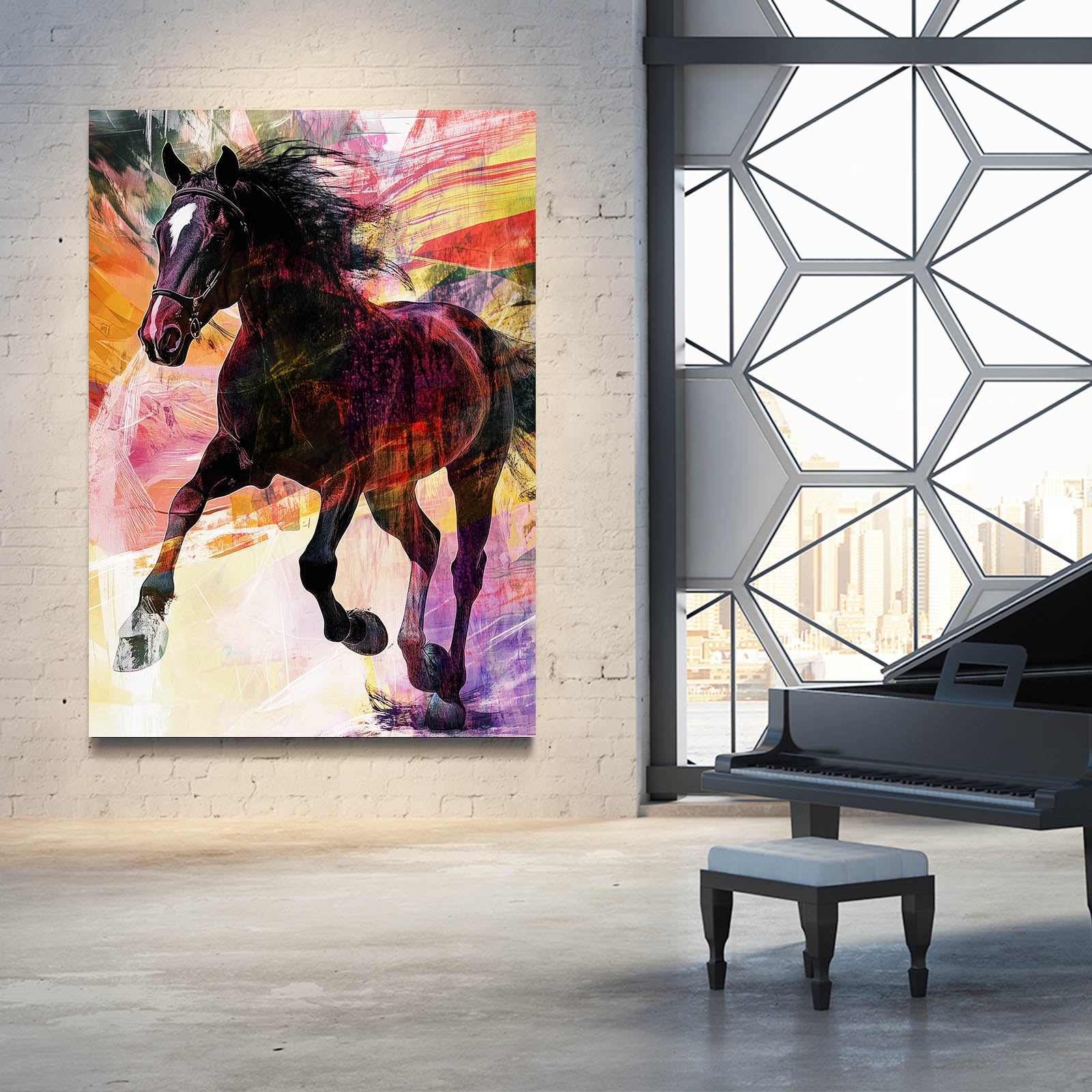Multicolored Horse Art captures the power and elegance of a horse, beautifully enhanced by vibrant colors. This striking artwork is an explosion of colorful hues that make a statement in any room. The dynamic strokes and bold contrasts embody the strength and grace of the horse in motion, drawing your eyes to every detail.