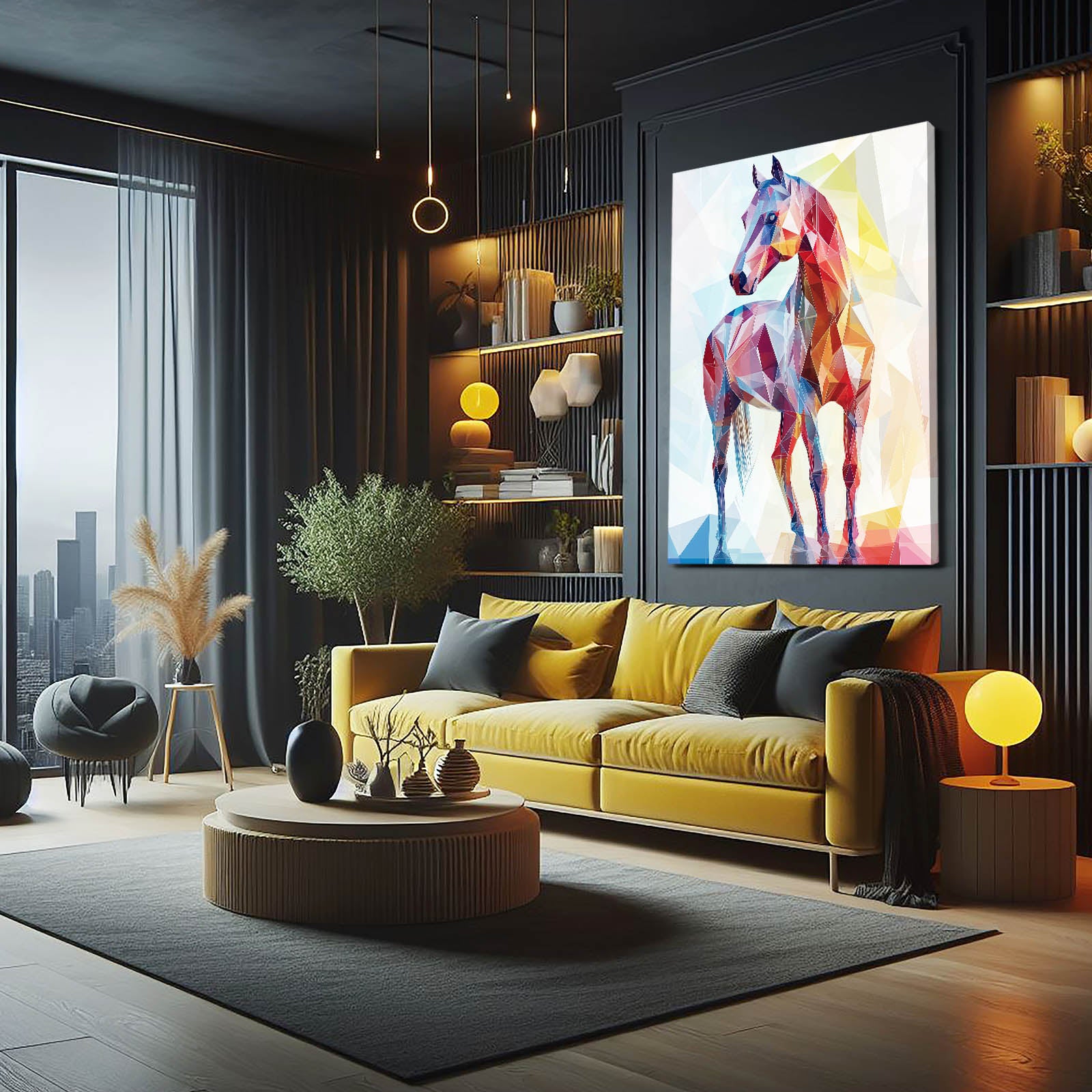 Let the bold contrasts of this masterpiece stand out on your wall, as the horse's powerful presence demands attention. The delicate watercolor techniques complement the subject's energy, making this piece not just a decoration, but a conversation starter. Whether you're a lover of horses or simply enjoy vibrant art, this piece is sure to leave a lasting impression.