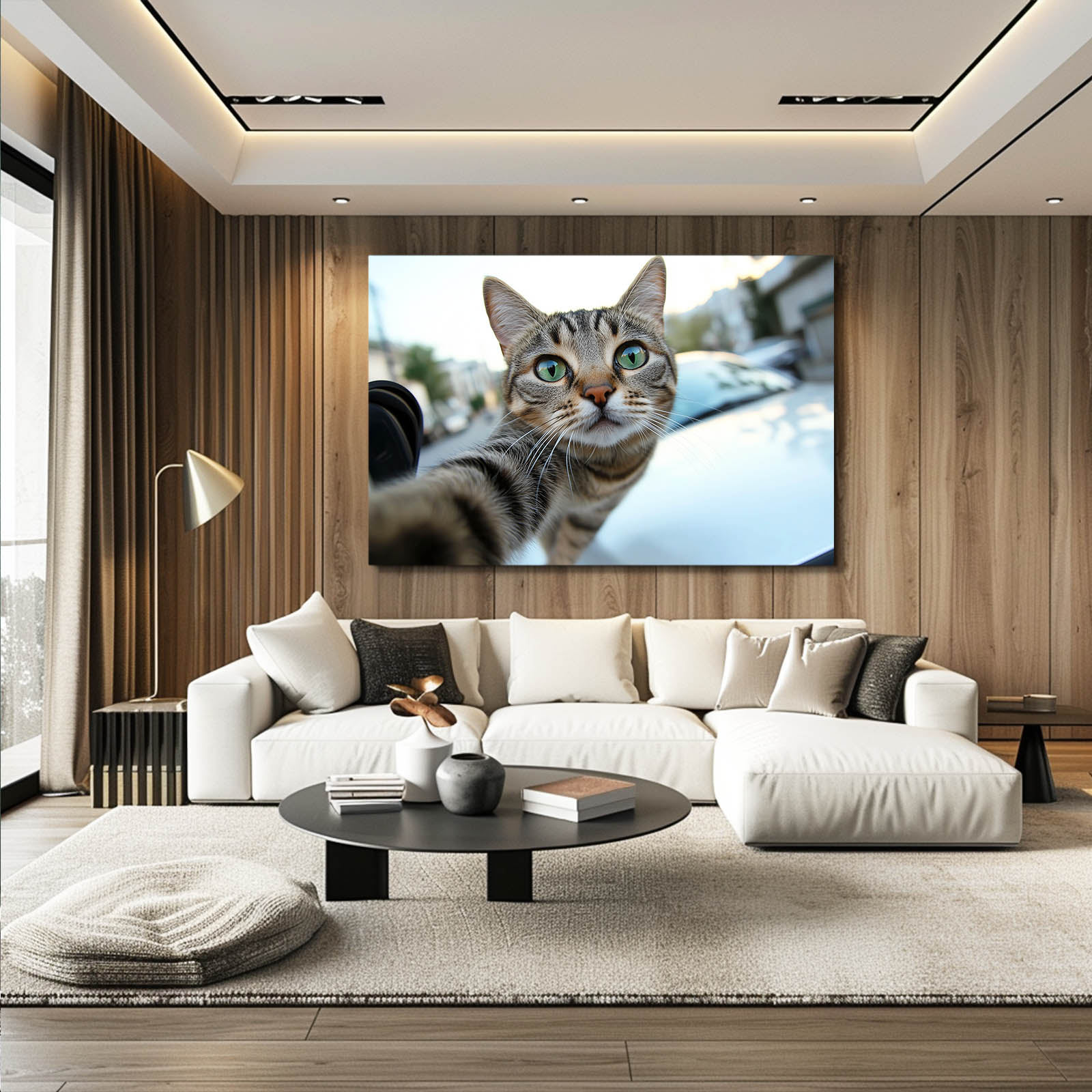 Introducing the playful and captivating Selfie Cat Wall Art, featuring a curious tabby cat taking a moment to capture its own perfect shot. With its striking green eyes and the charming angle of its selfie, this piece brings a sense of personality and fun to any space. Its vibrant and sharp details make it an instant conversation starter in your living room, bedroom, or office. 📸