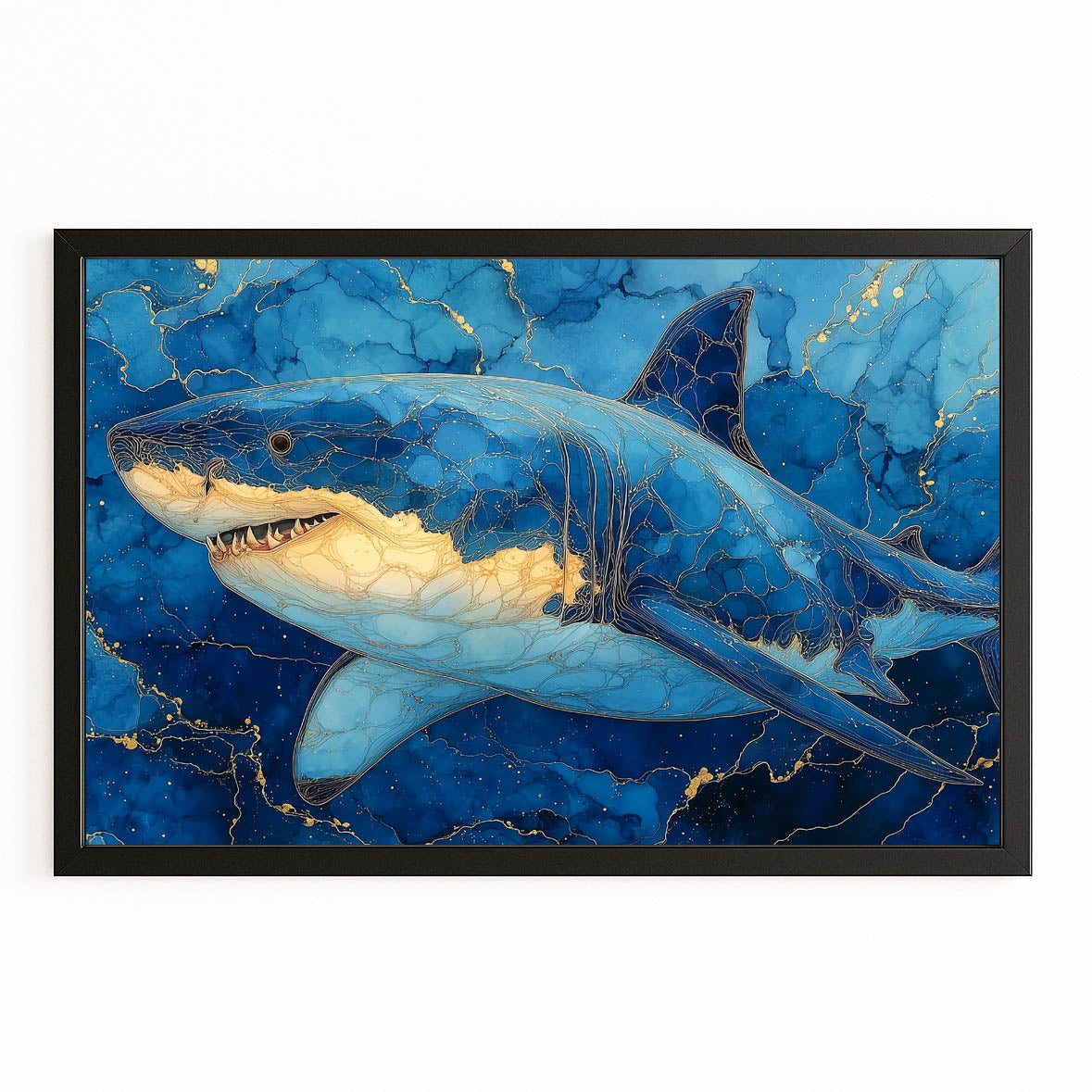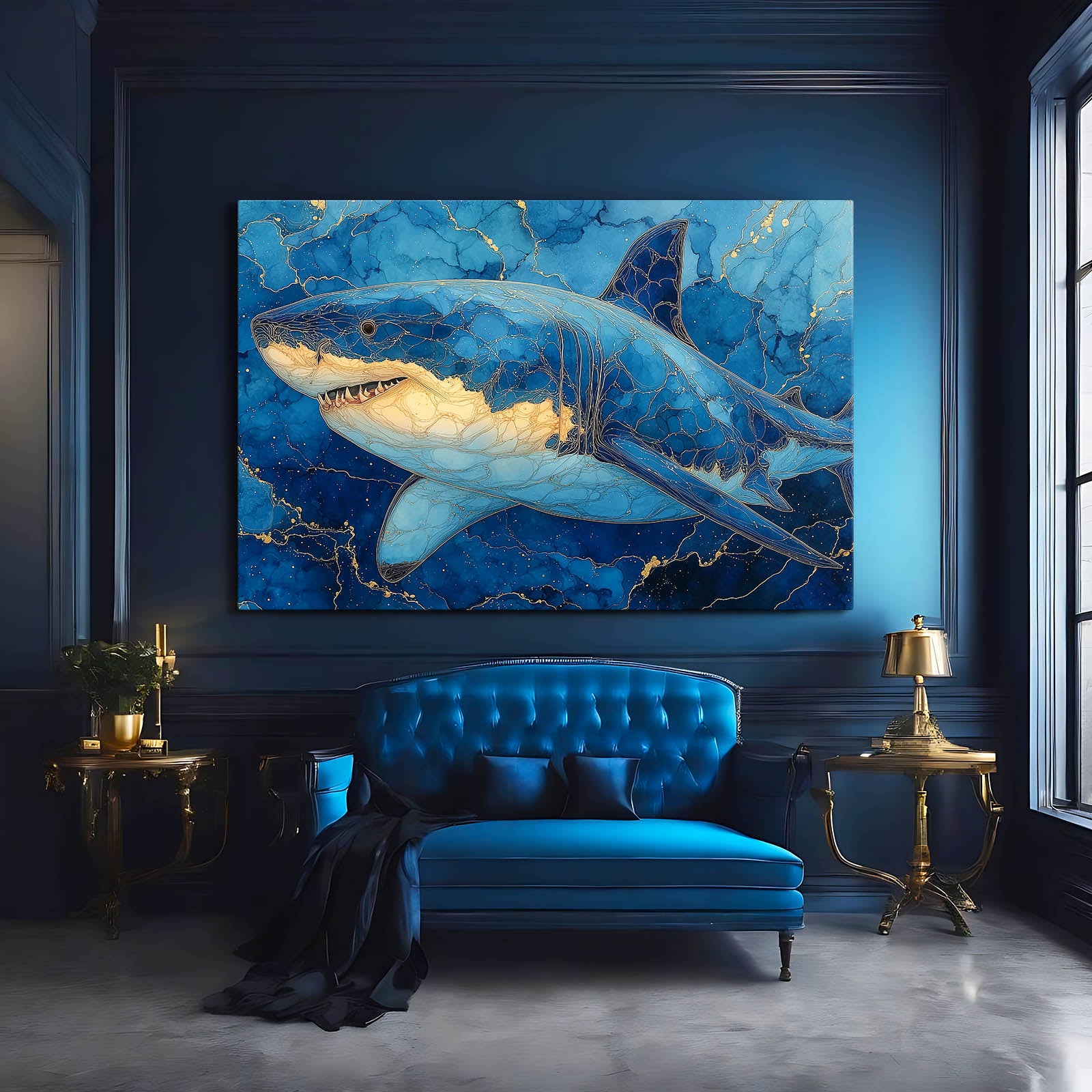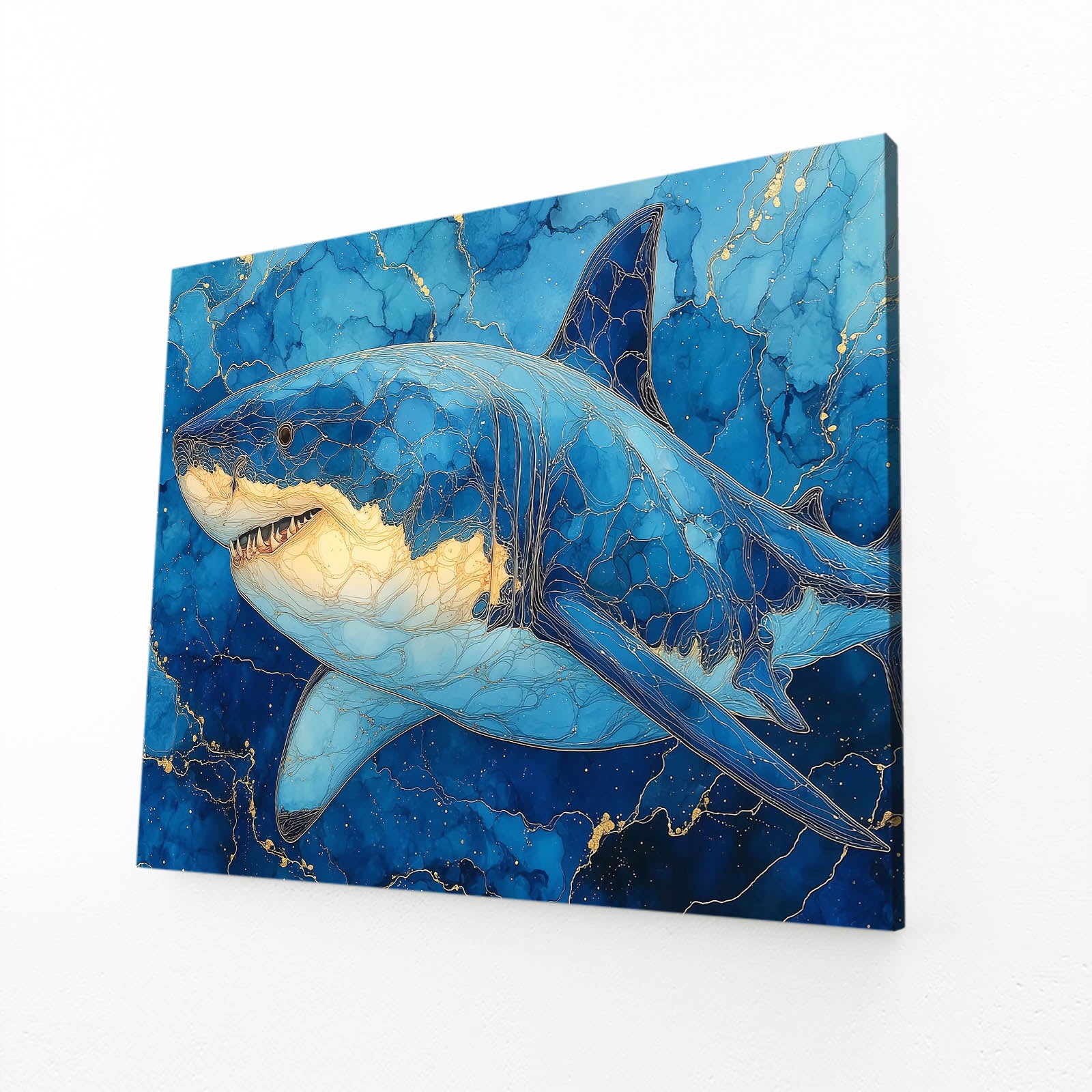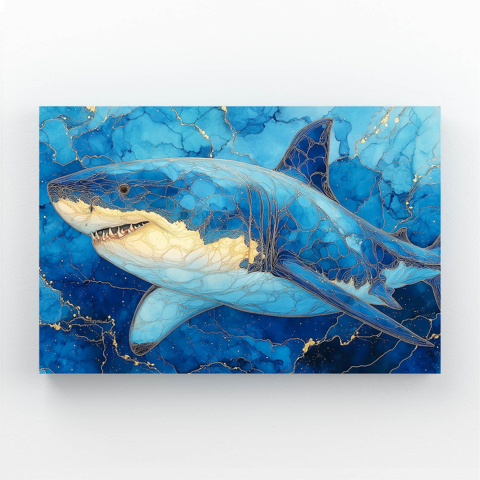 Within the first visual moments, Shark Wall Art Blue reveals a commanding marine presence shaped by deep blue tones and luminous highlights. The composition naturally draws the eye, creating a feeling of depth and calm authority. This balance invites viewers to pause, breathe, and feel connected to the ocean’s quiet power.