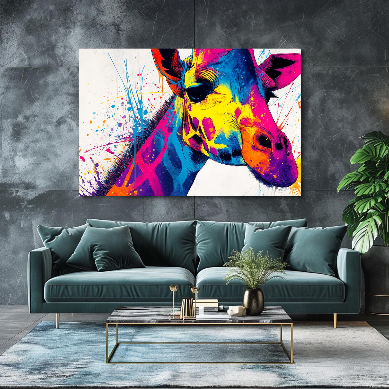 With its striking pop of neon colors and confident giraffe portrait, this piece radiates energy and imagination. Every detail reflects vitality, making it a perfect choice for those who want their walls to feel alive and expressive.