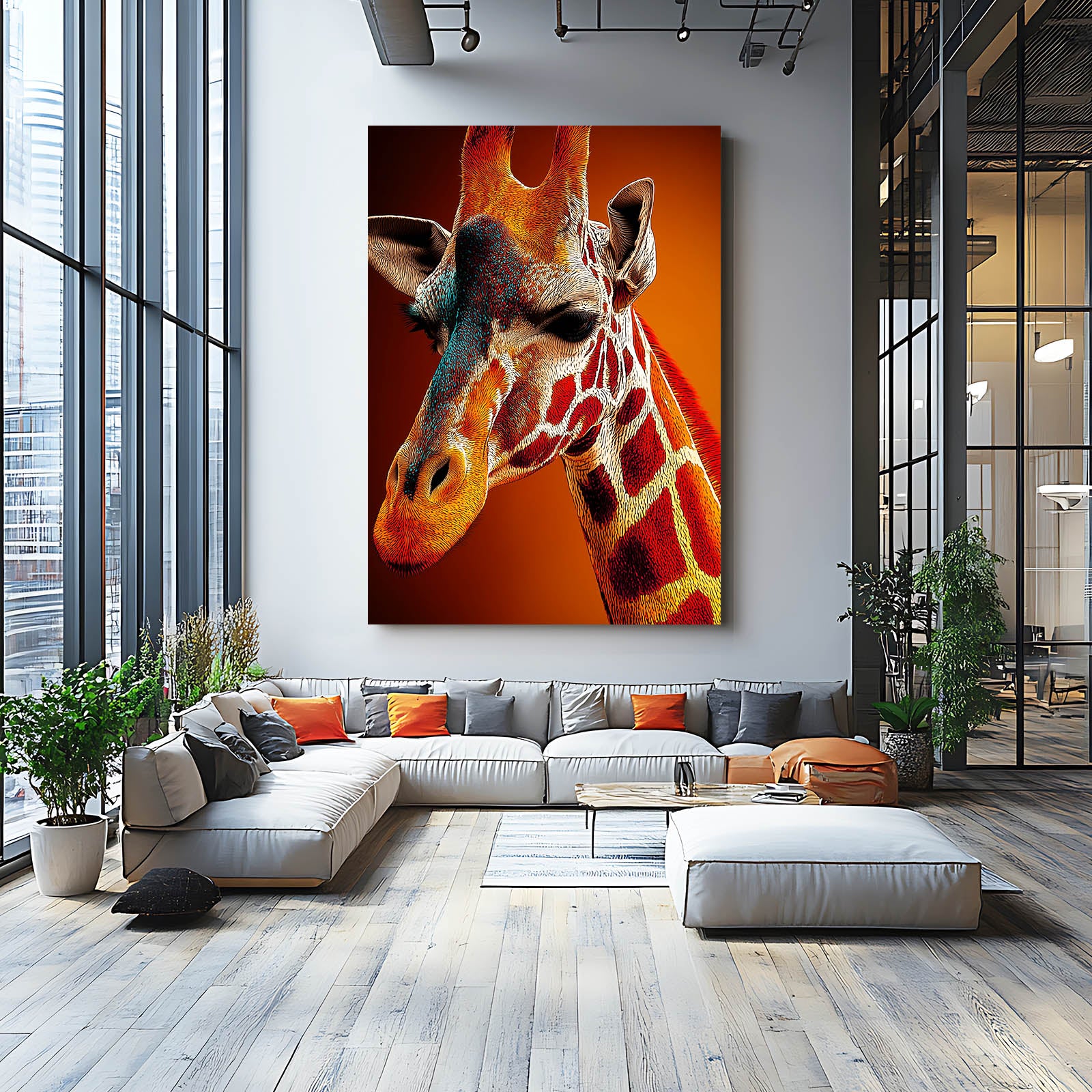 Ideal for living rooms, workspaces, or creative studios, this giraffe artwork adds sophistication while keeping the environment bold and inspiring. Its striking contrasts and unique design ensure it becomes the centerpiece of your decor.