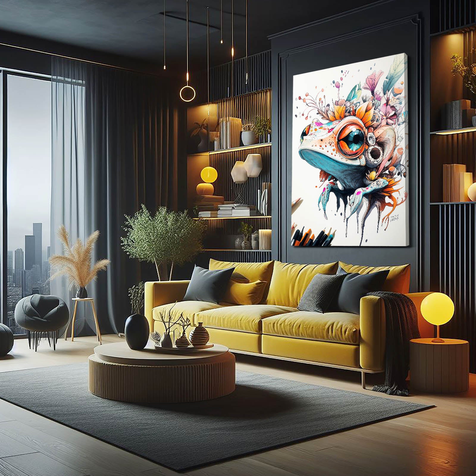 Ideal for art lovers and nature enthusiasts alike, the Art Frog embodies a playful yet elegant aesthetic. The detailed expression of the frog, combined with an array of floral elements and soft tones, creates a unique harmony that will enhance any décor. This piece brings energy and life to your walls.