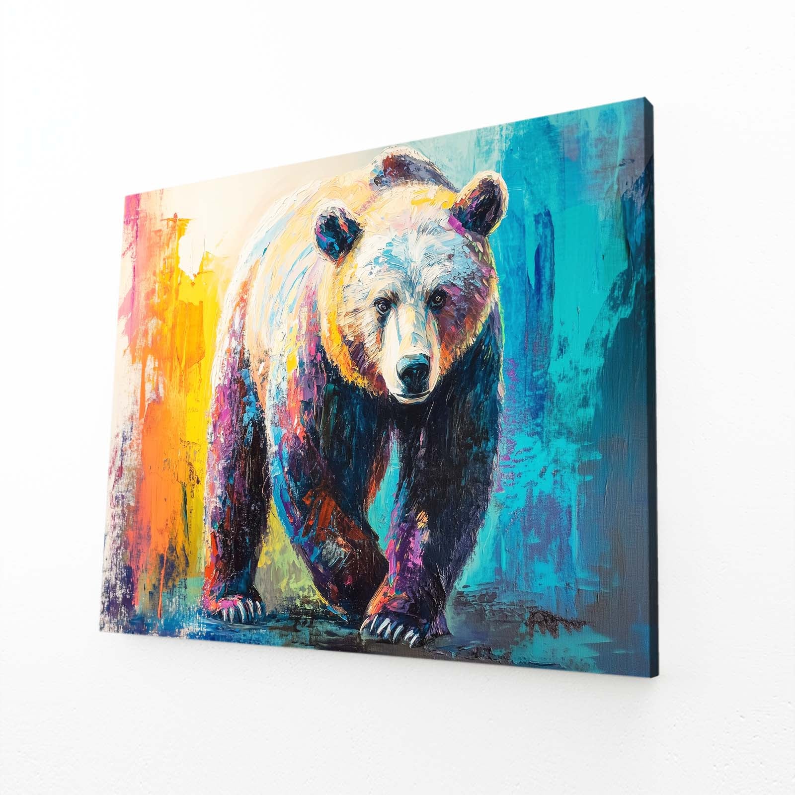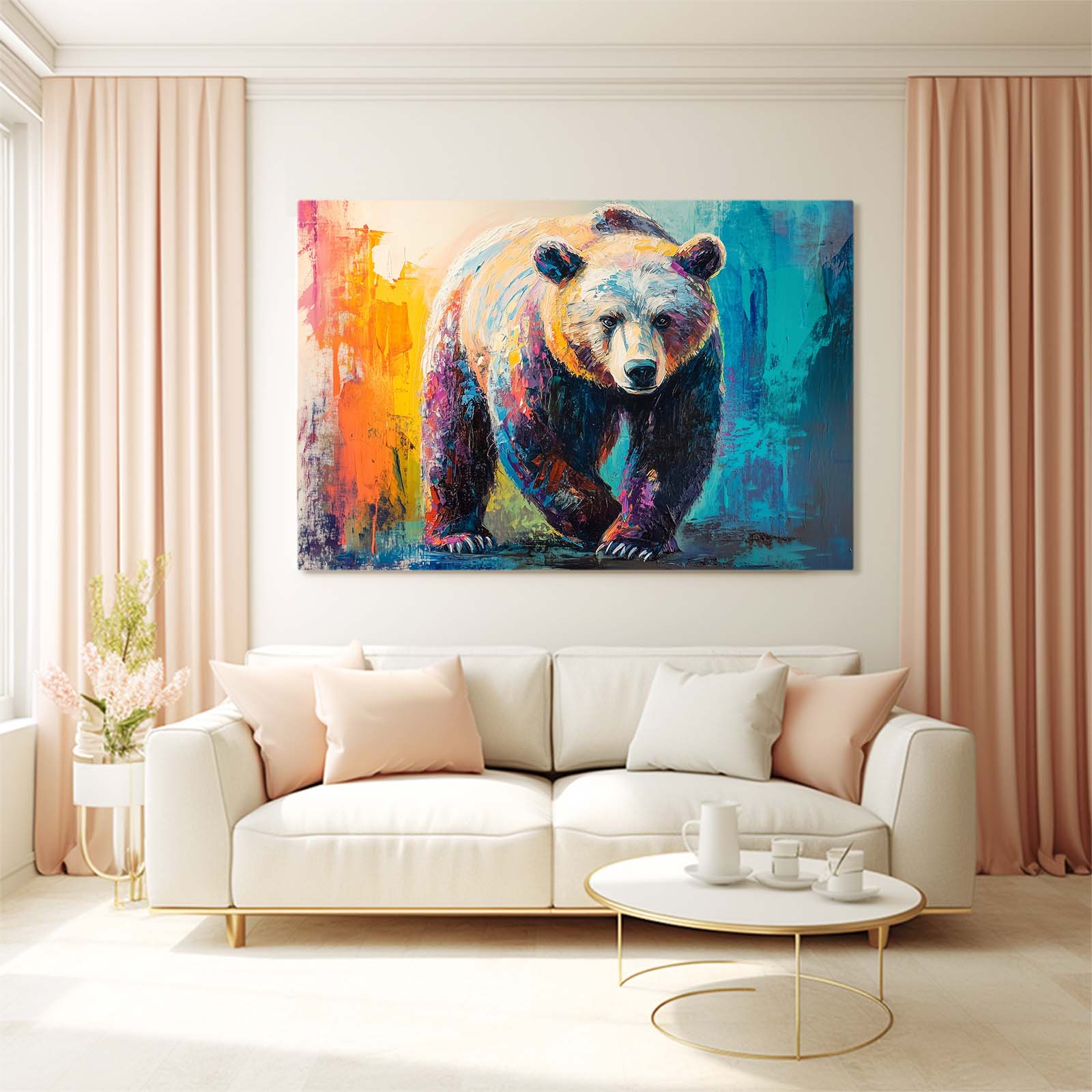 Experience the raw power and beauty of nature with the stunning Bear Print. This captivating art piece, full of vibrant colors and dynamic strokes, brings the majestic bear to life in an entirely new way. The strong presence of this animal combined with the striking bold colors will make it a standout in any room.