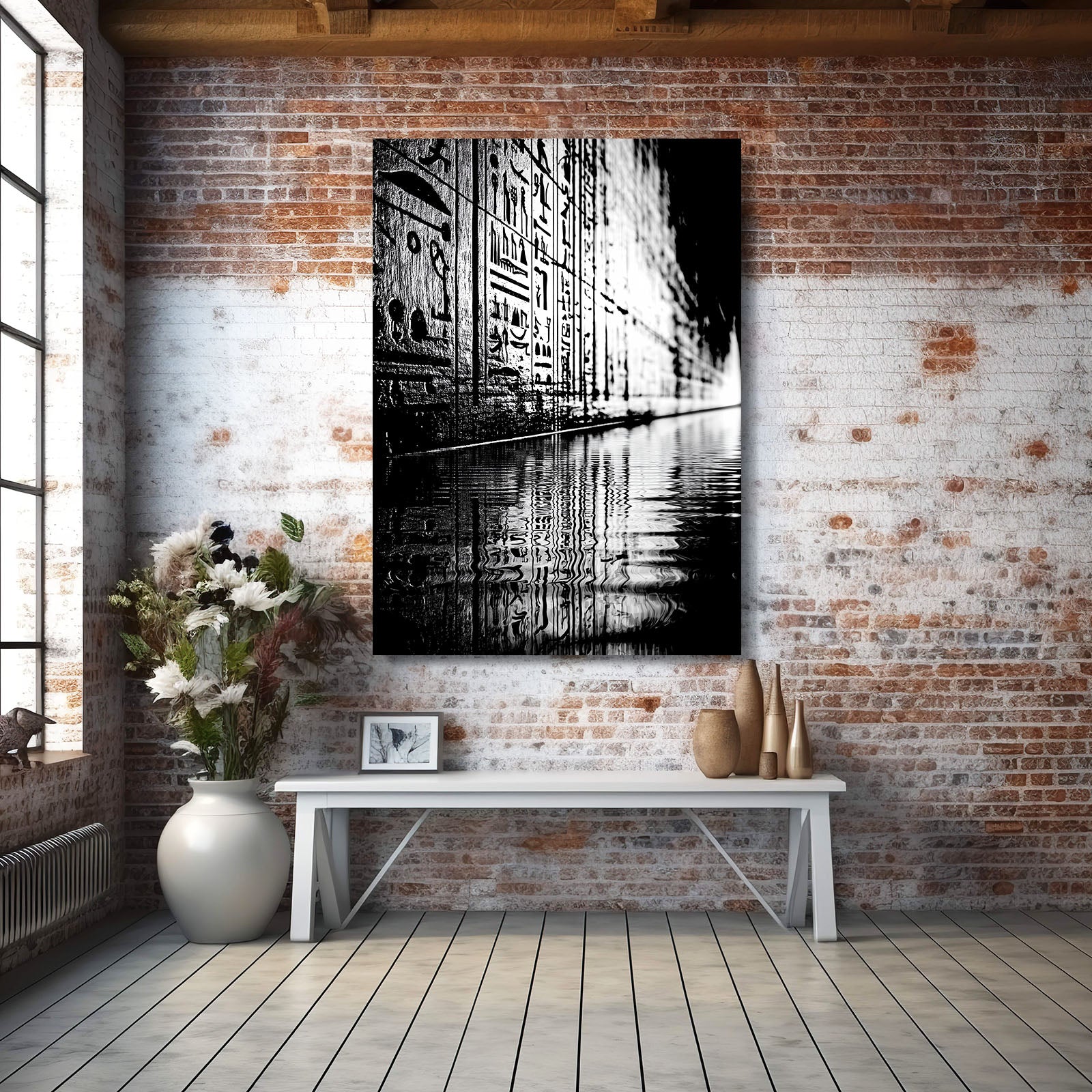 Step into the world of ancient Egyptian culture with the exquisite Black And White Egyptian Wall Art. The captivating contrast between the deep black hues and reflective waters will transport you to a timeless space of mystery and wonder. Every inch of this masterpiece speaks to the mysticism of the Egyptian civilization, where the hieroglyphics stand strong, evoking an aura of depth and history.