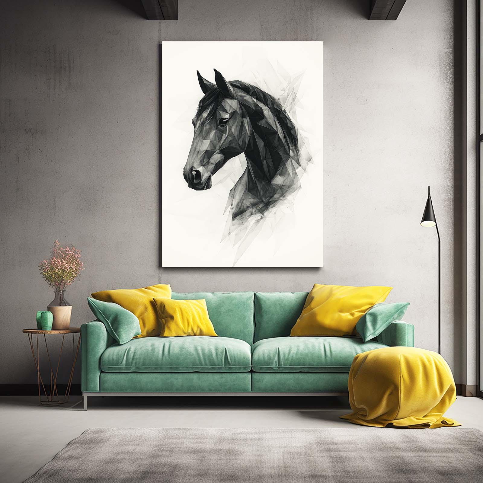 Face Horse Art is a stunning visual representation of strength and beauty, captured in bold black and white geometric patterns. The facial details of the horse are expertly outlined with crisp lines, giving it a modern and abstract feel that will stand out in any room. Its dynamic design creates an impactful presence, perfect for adding sophistication and style to your space.