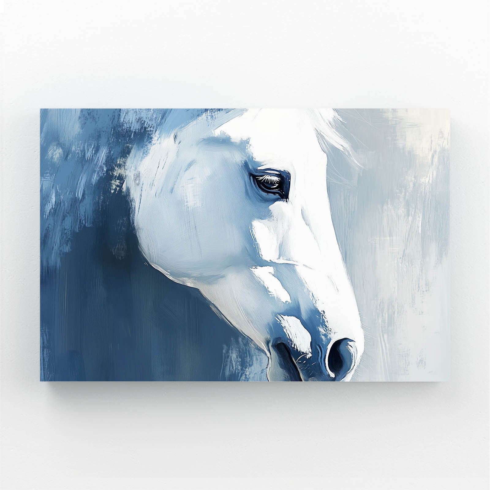 Horse Art Deep embodies the serene power and beauty of the majestic horse, captured in calming tones of blue and white. The soft brushstrokes and minimalistic style of this artwork will add a sense of tranquility and sophistication to any space. Whether placed in a modern living room, bedroom, or office, this stunning piece enhances any room with its timeless elegance.