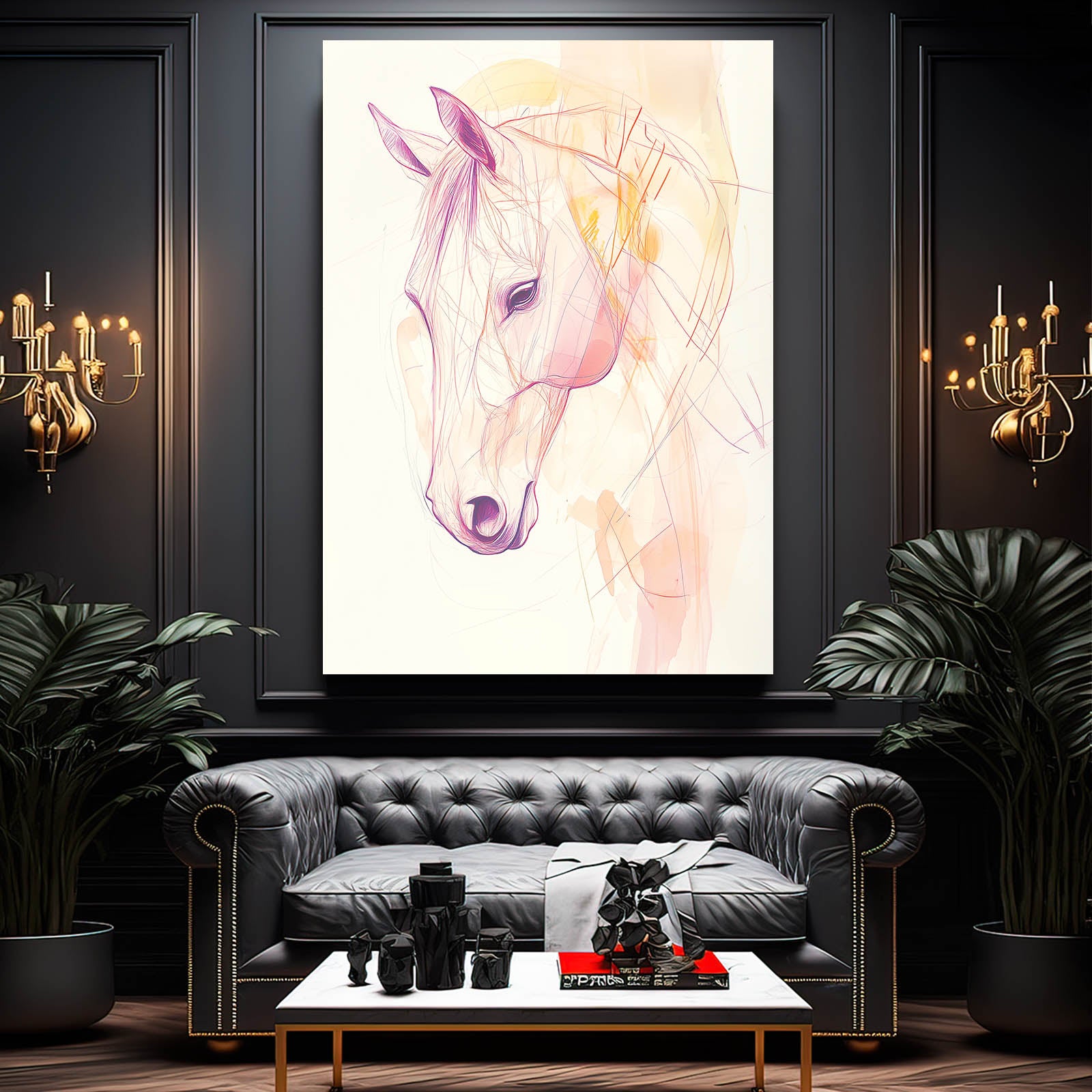 Every line of the Horse Head Line Art tells a story of movement and grace, evoking feelings of freedom and strength. The gentle use of pastel tones enhances its soft yet powerful presence, making it a timeless addition to any room.