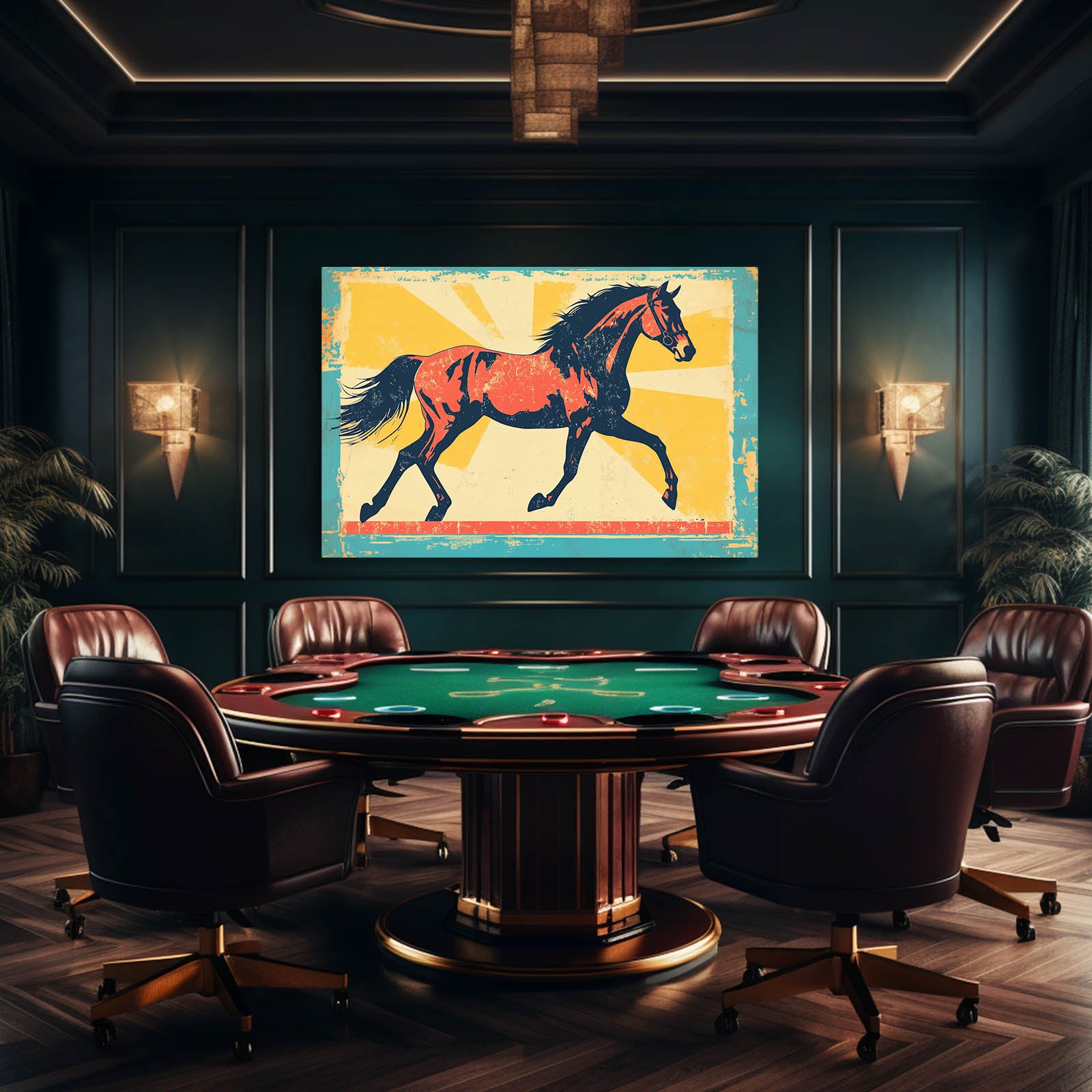 Enhance your kitchen space with the stunning Kitchen Horse Art, a perfect blend of vintage charm and modern style. This unique piece showcases a strong horse in a dynamic pose, framed by vibrant colors that bring warmth and energy to any room. The bold colors and distinctive design create a lively and welcoming atmosphere for your kitchen or dining area.