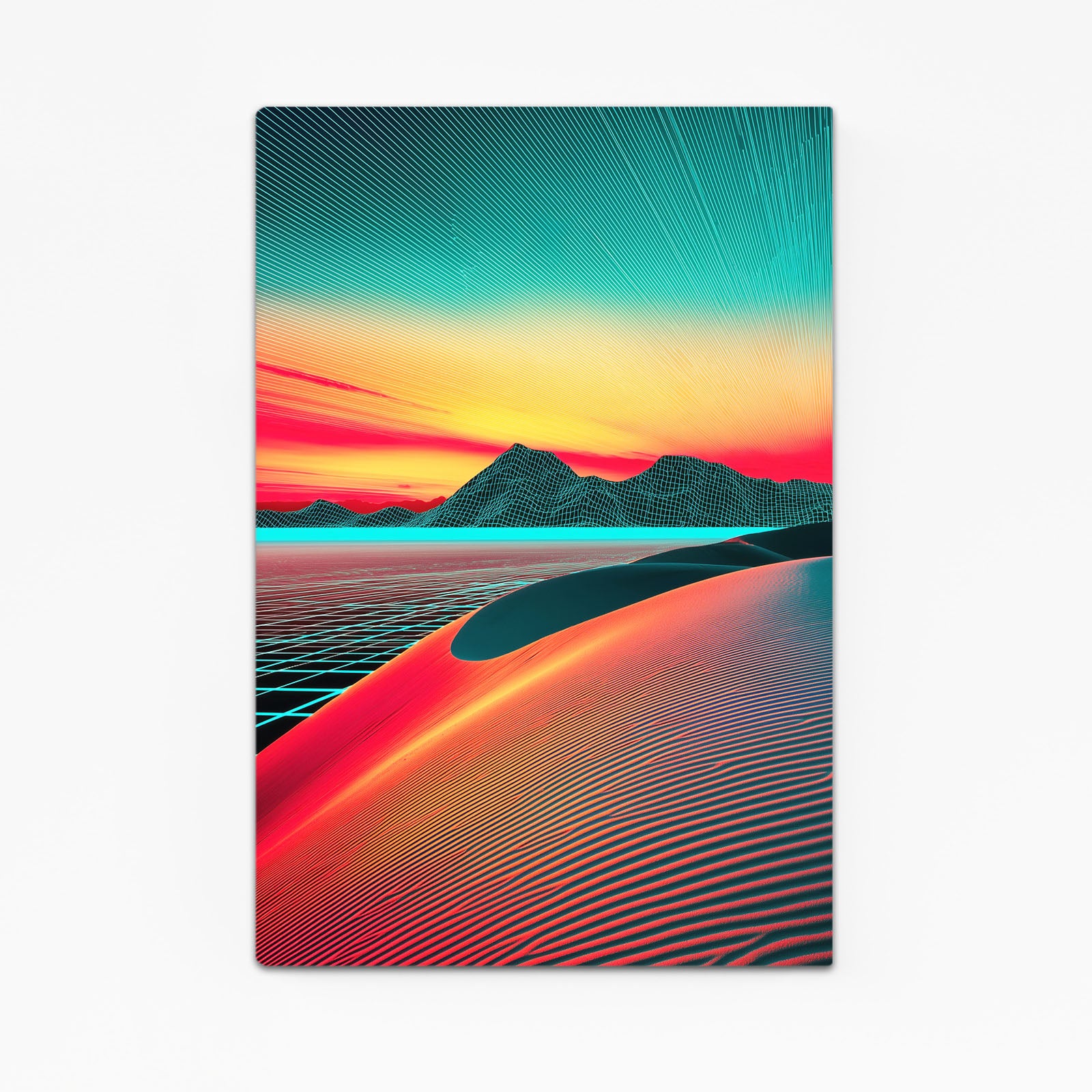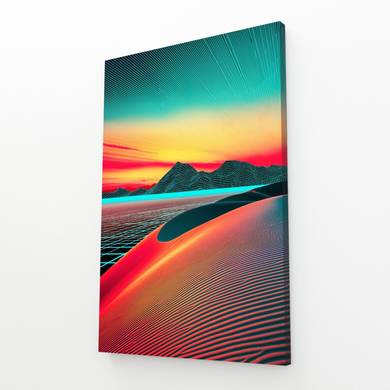 Experience the vibrant colors and dynamic lines that evoke a sense of movement and energy. The contrast between bold reds, electrifying blues, and golden hues transports you to a surreal yet familiar Egyptian landscape. It's a visual experience that transcends traditional boundaries.