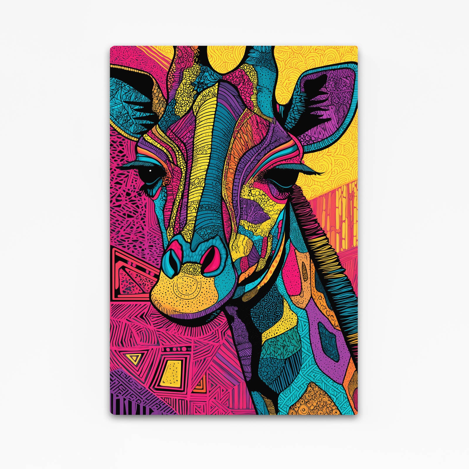 The Giraffe Print Wall Art is a celebration of color, creativity, and individual expression. Its striking mix of vivid patterns and bold hues makes this piece an instant centerpiece for any room.