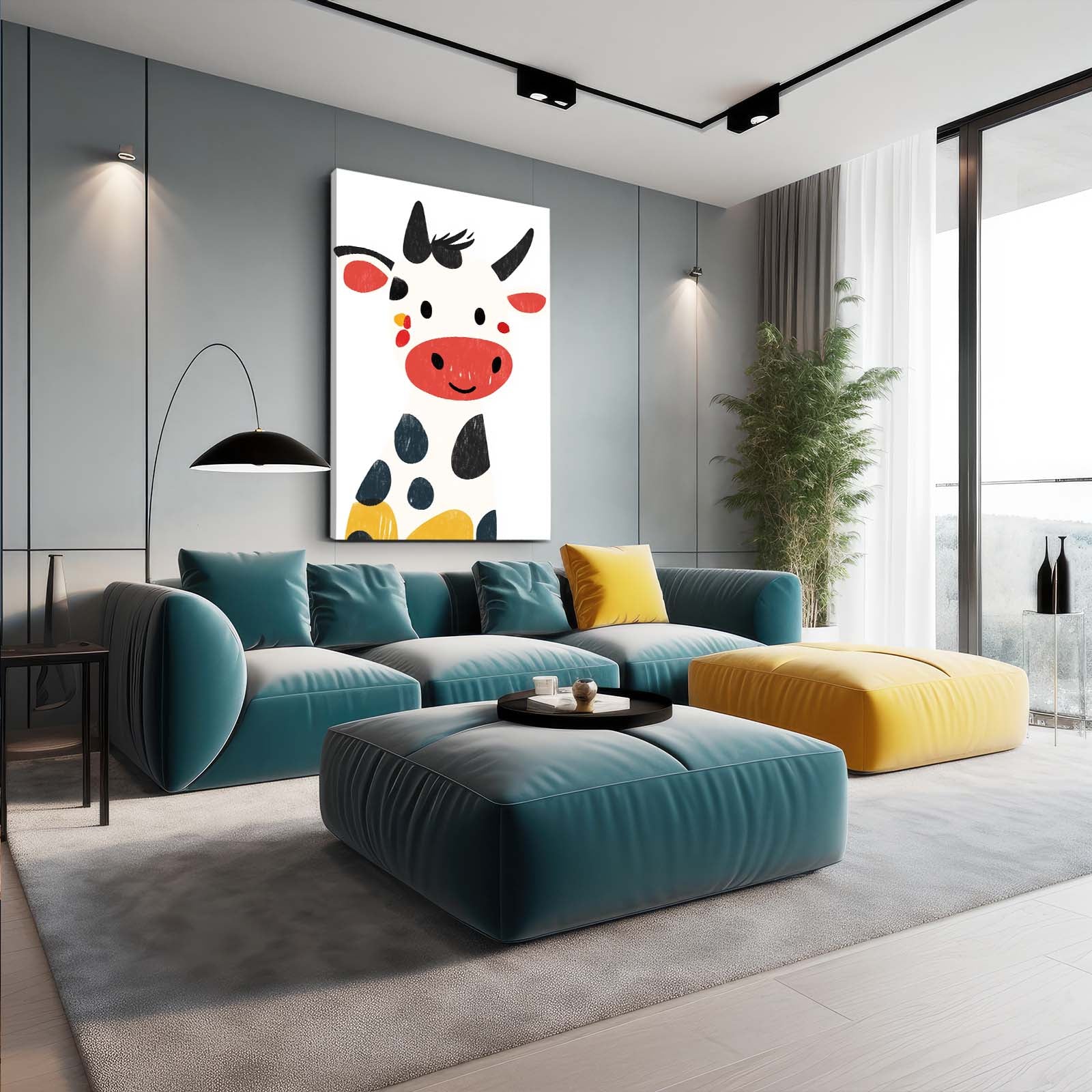 Bring a pop of color and joy into your space with the White Cow Print. This delightful artwork features a playful cow in a clean, minimalistic design, making it the perfect addition to brighten up any room. The bold, colorful accents contrast beautifully against the white background, ensuring this piece captures attention and sparks smiles.