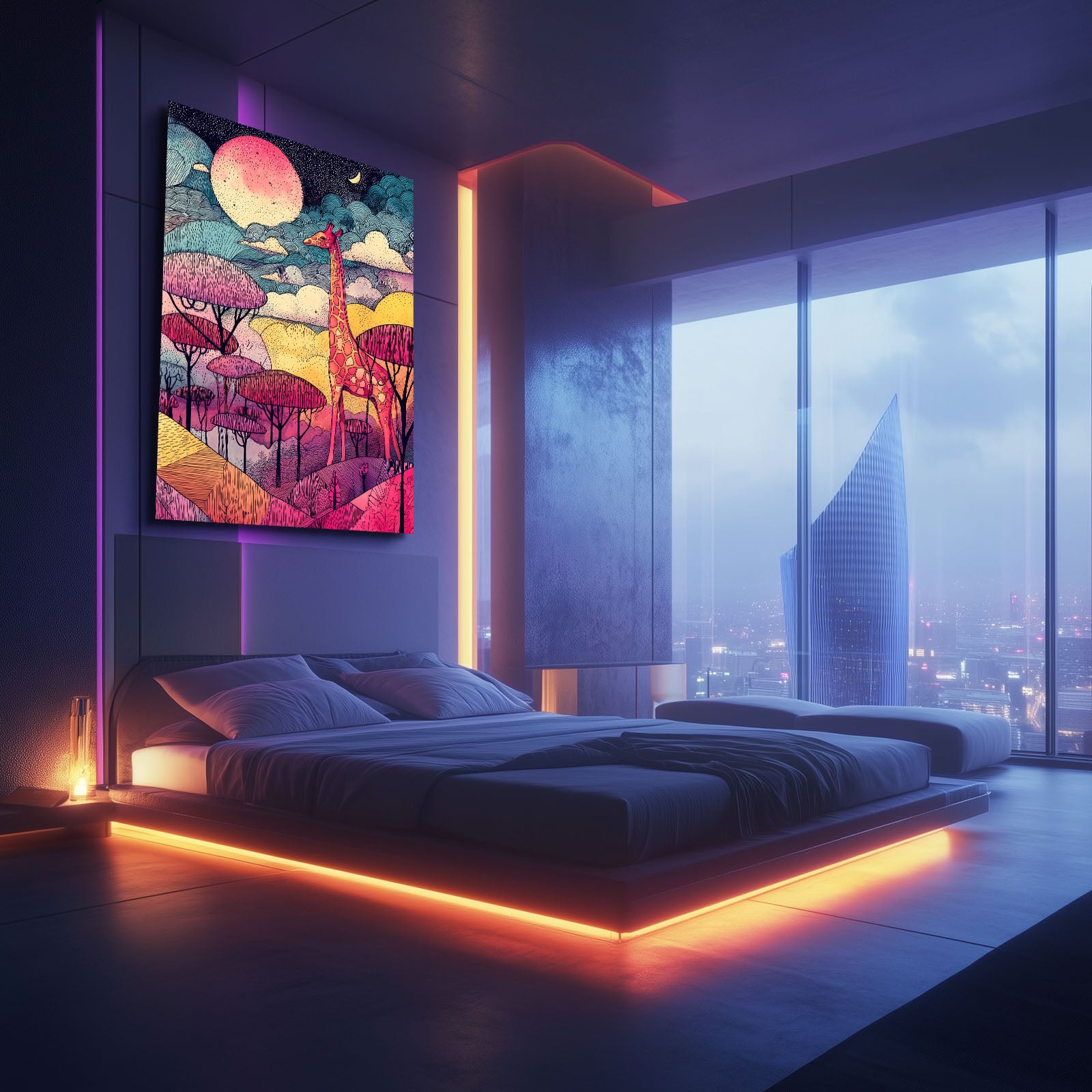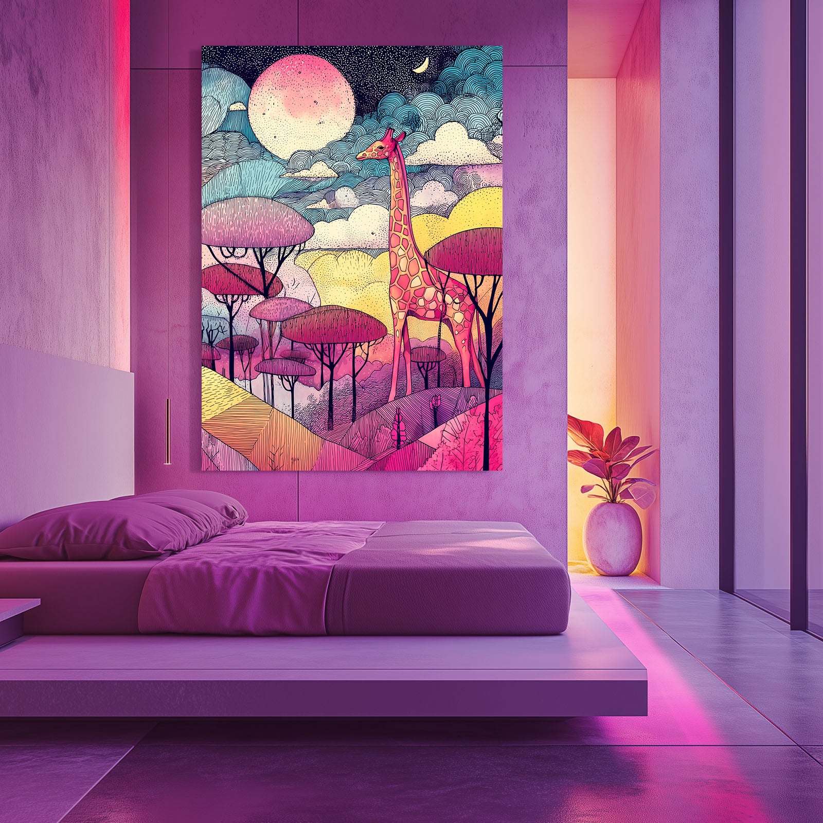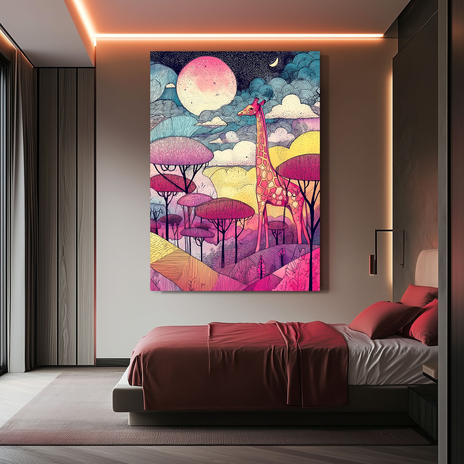 The Giraffe Artwork brings you into a world of fantasy, where colors glow and nature feels alive with mystical energy. Its vivid design instantly sparks imagination and creates an atmosphere filled with wonder.