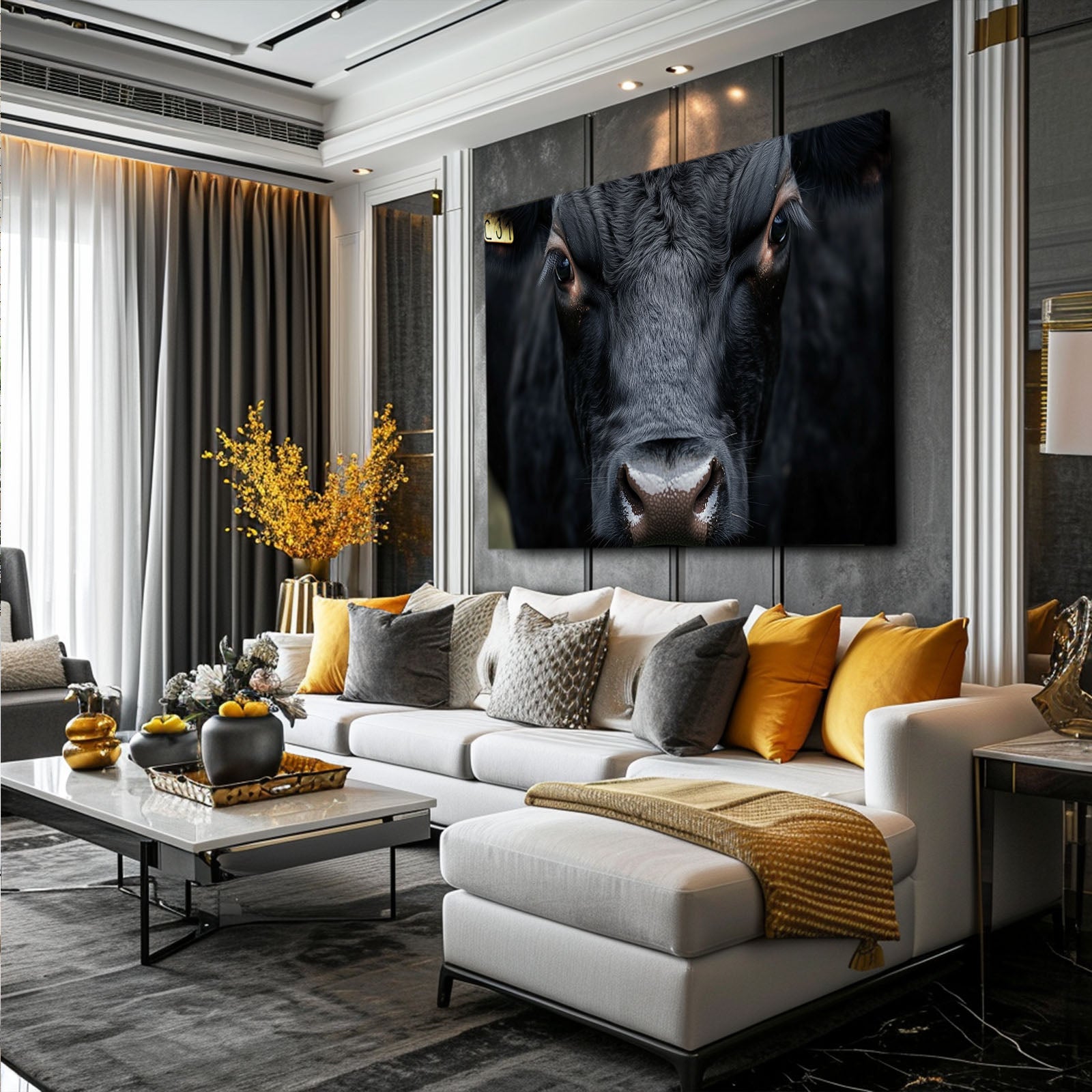 Let the bold black tones and the expressive gaze of this cow bring energy and a sense of calm to your home. 🐄 This captivating artwork will blend seamlessly with your decor, creating a unique focal point in your living room, kitchen, or office.