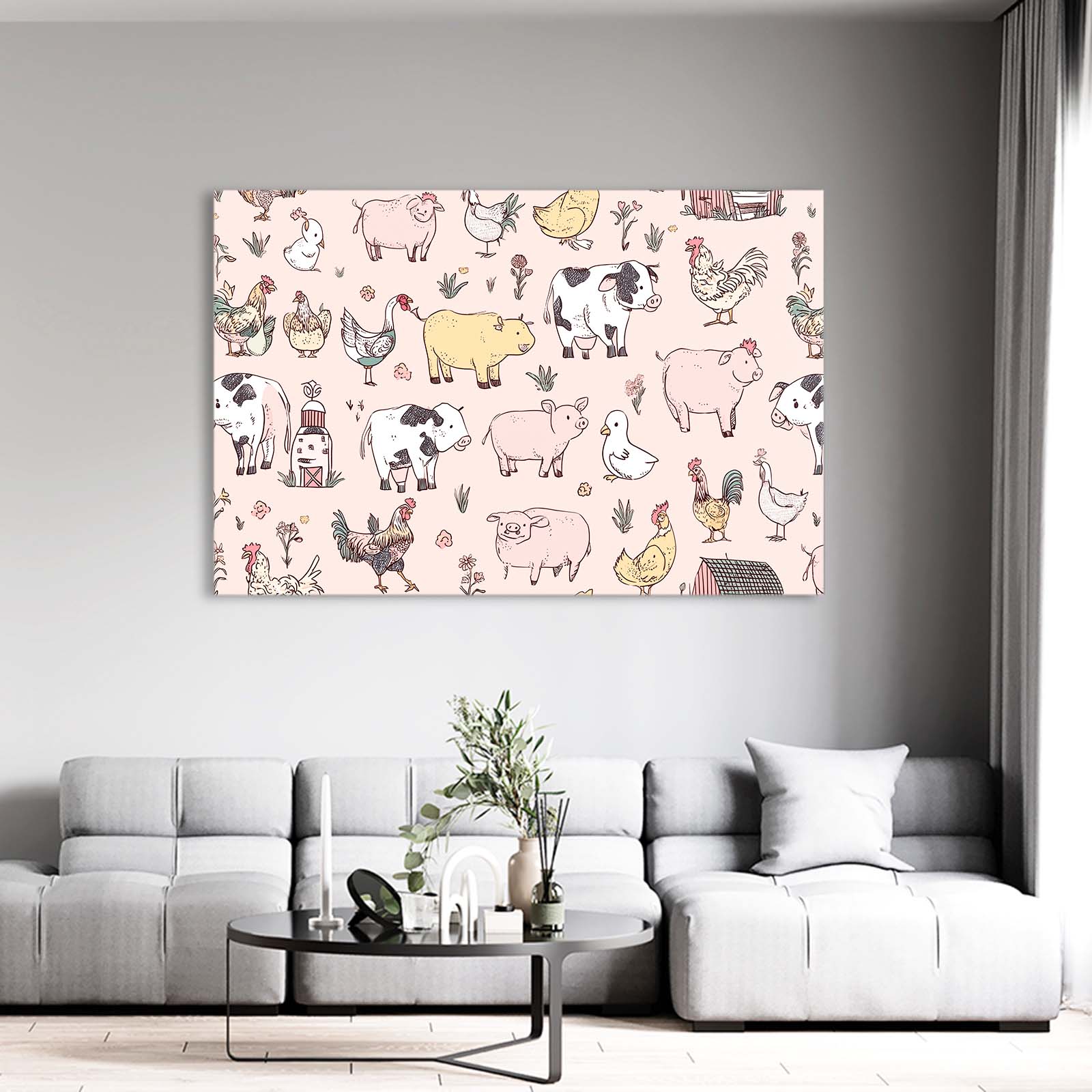 Our Animals Farmhouse Decor brings delightful warmth and joyful nostalgia to your home. With playful animals in soft hues, this decor captures the essence of farmhouse living with a contemporary twist. Each illustration is thoughtfully arranged, creating a harmonious vibe that feels both inviting and relaxed.
