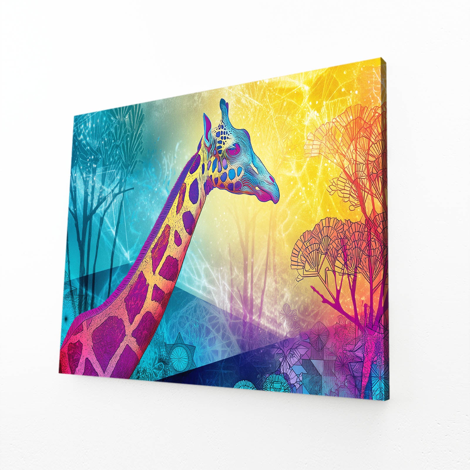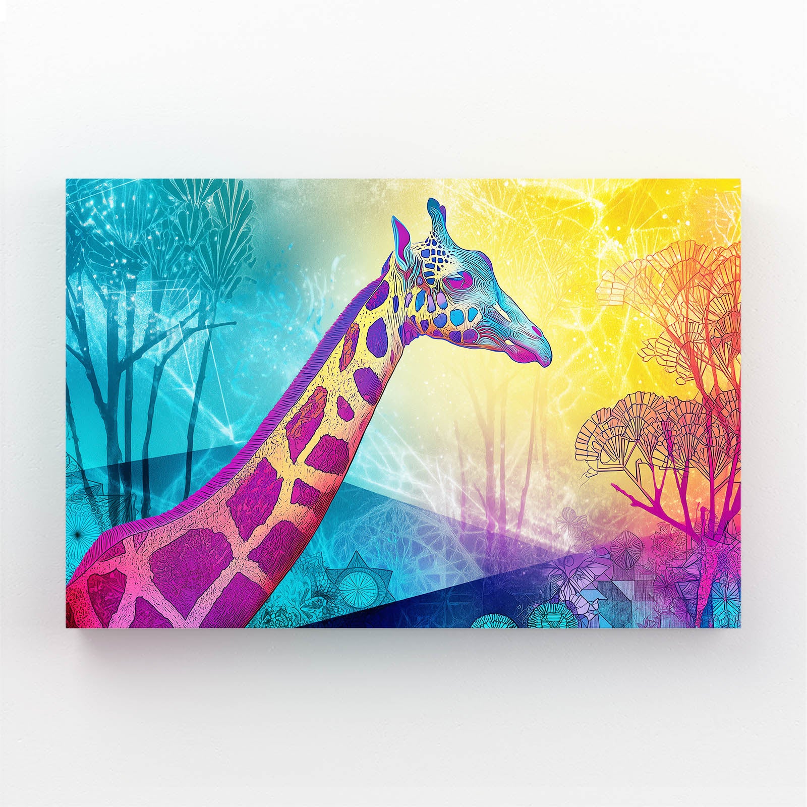 Every detail is crafted to fill your walls with warmth and delight. The giraffe’s gentle form, surrounded by fantastical patterns, makes this piece more than just decor — it becomes a story that children and adults alike will treasure.