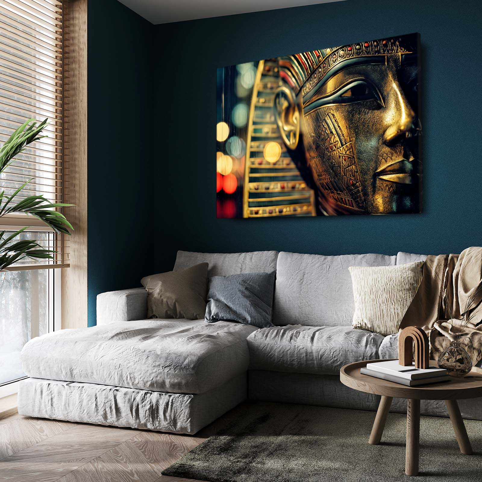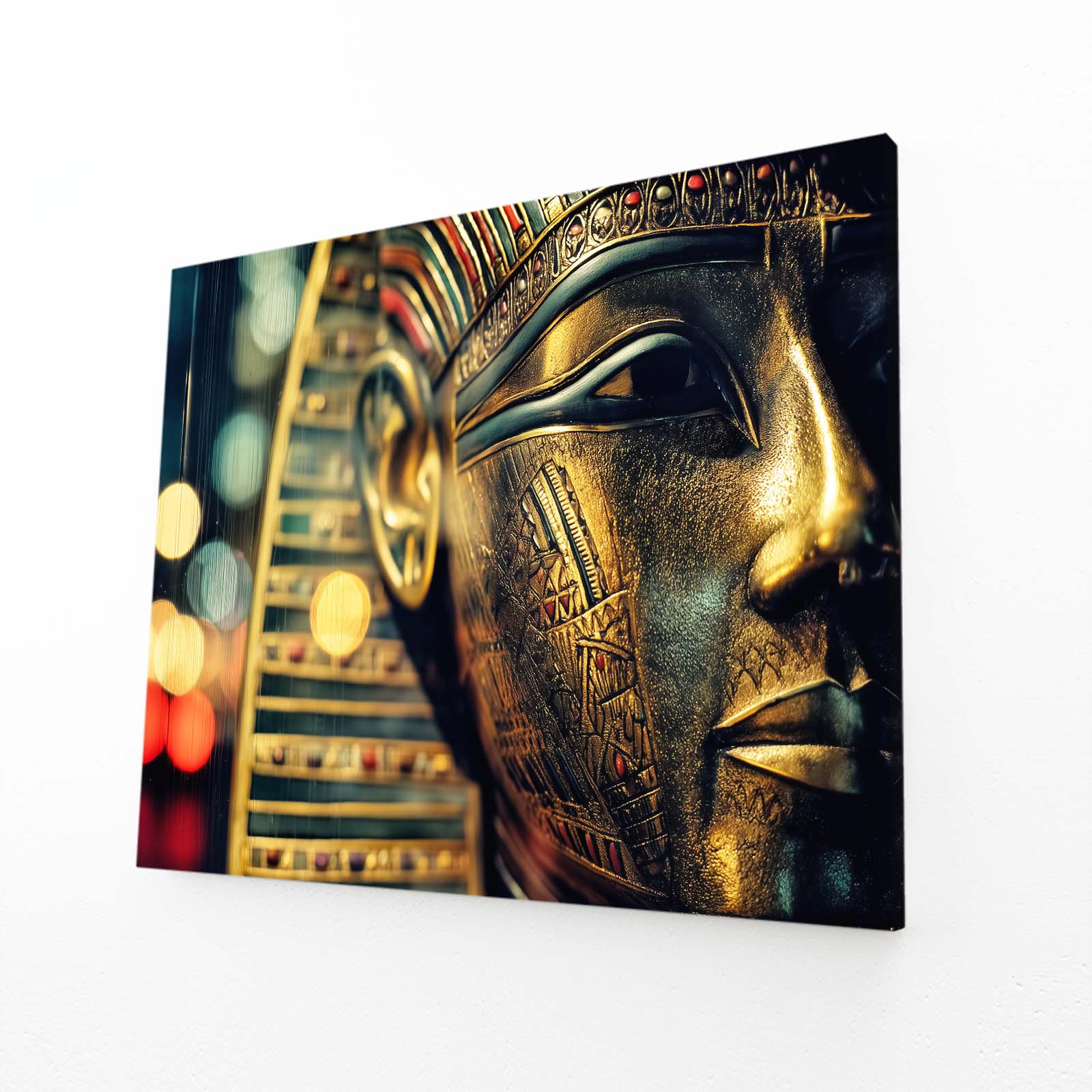 Feel the allure of ancient Egyptian royalty as you admire the stunning craftsmanship that brings every detail to life. From the golden tones to the ancient hieroglyphs, this artwork radiates an air of mystery and elegance. Add a touch of regal sophistication to your collection with this masterpiece.