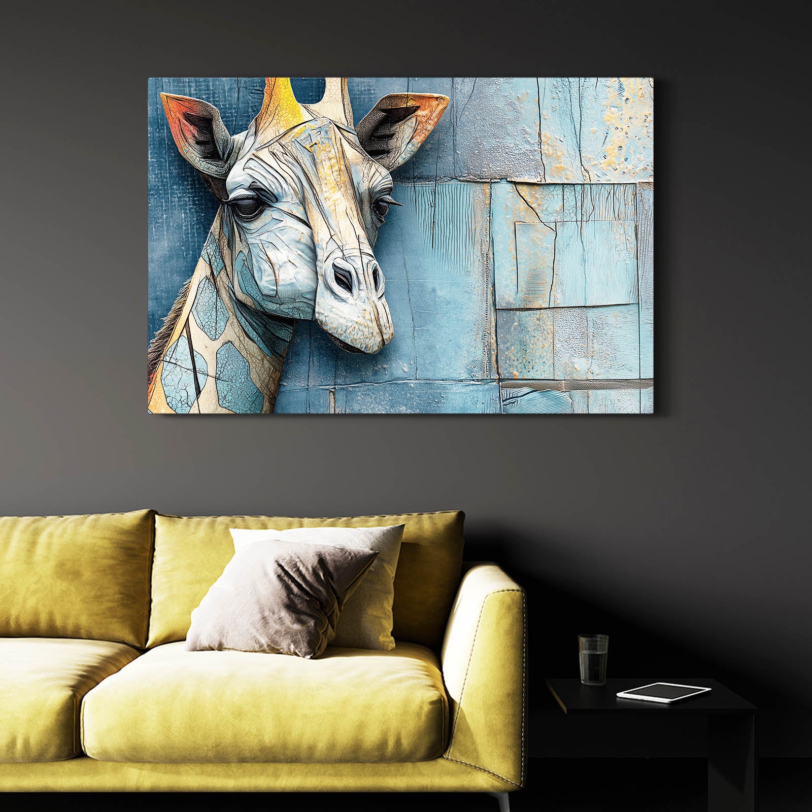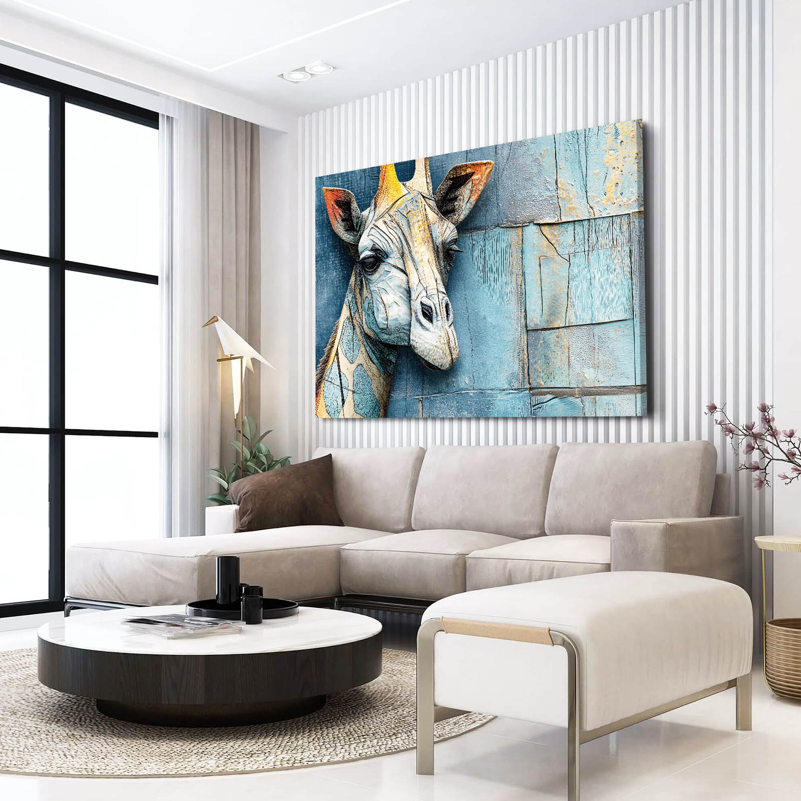 Designed to enhance both modern interiors and creative spaces, the balance of warm and cool tones makes this piece versatile and timeless. The giraffe’s delicate expression combined with the abstract background creates a harmonious atmosphere that instantly elevates your walls.