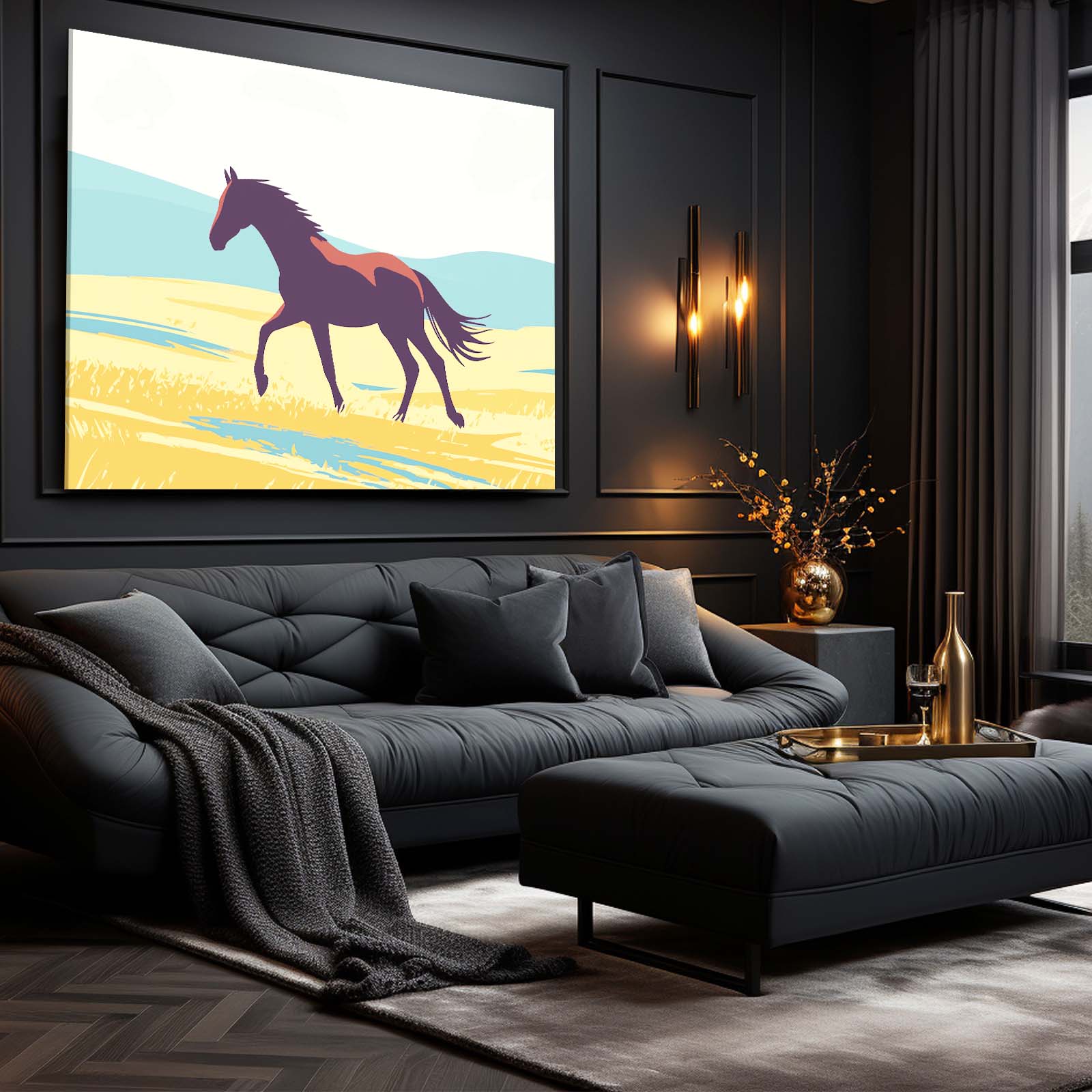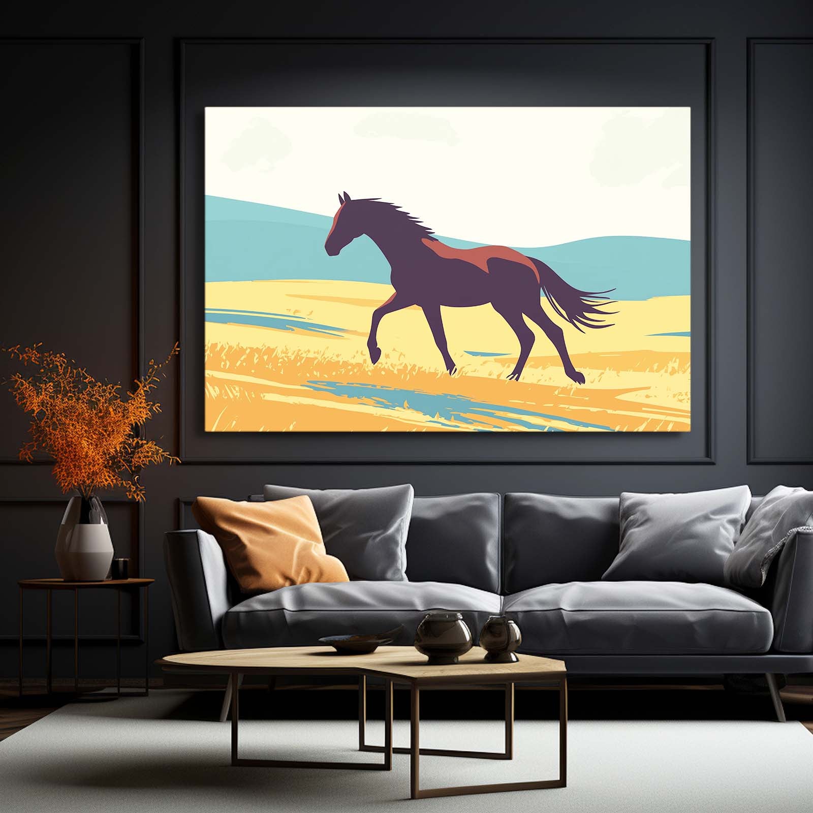 Horse Canvas captures the freedom and elegance of a horse in motion, beautifully portrayed through a striking use of vibrant colors. The bold, minimalist design evokes a sense of energy and grace, making this artwork a perfect addition to any modern space. The rich hues and dynamic composition highlight the horse’s strength and gracefulness.