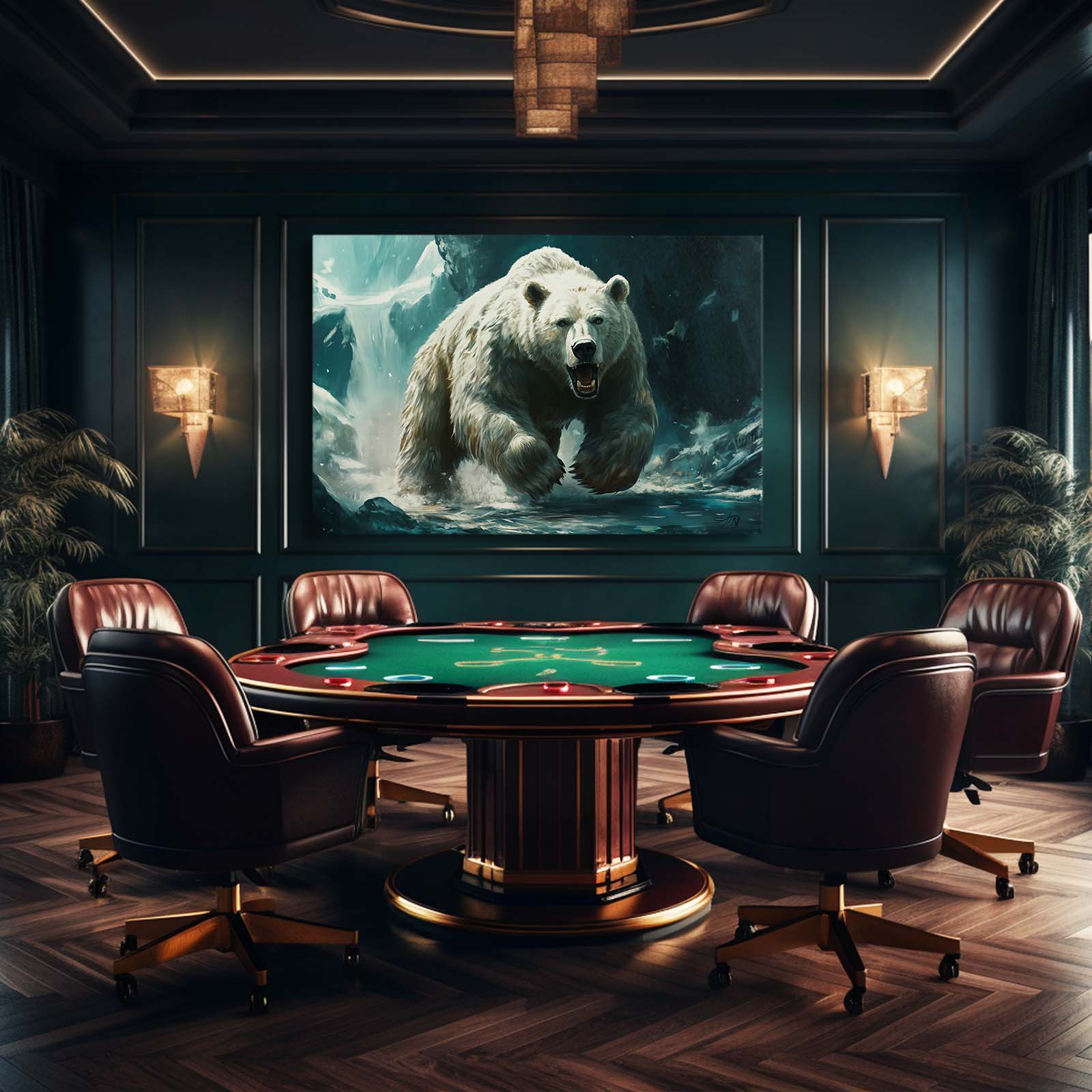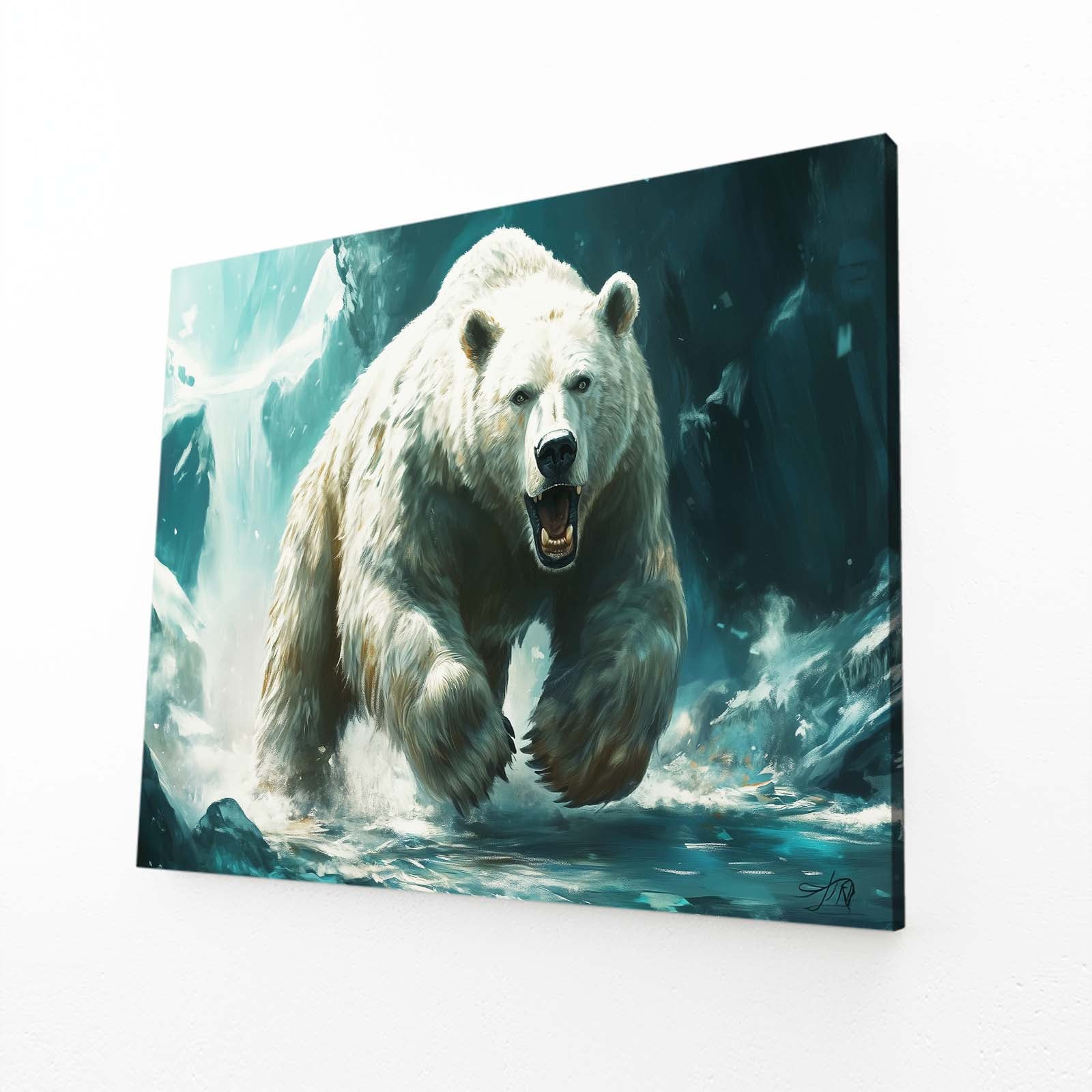 This artwork captures the essence of the wild, where the white bear stands as a symbol of resilience and force. The icy blues and stark whites add to the dramatic intensity of the scene, making it perfect for any space in need of a striking and bold statement.