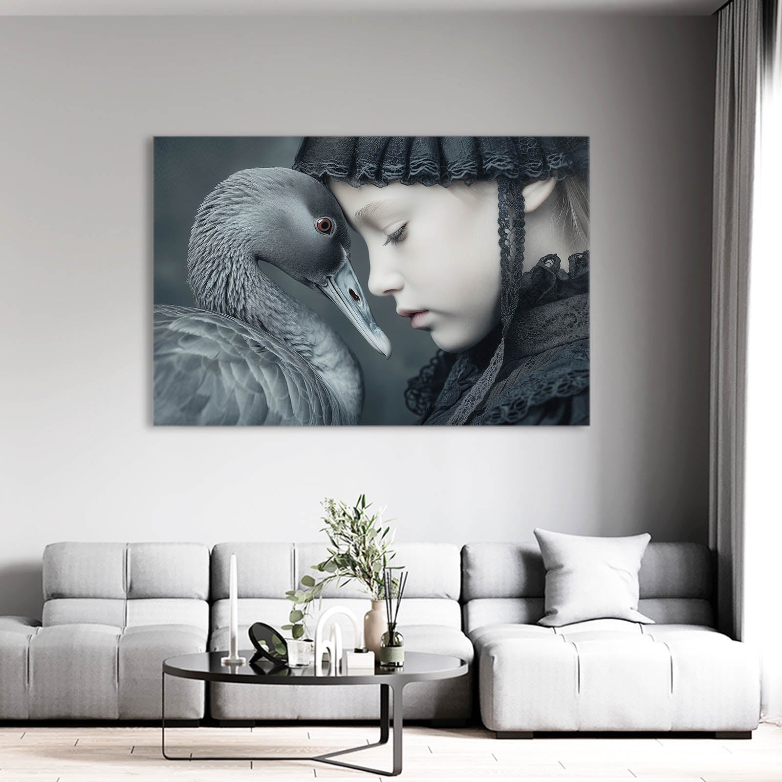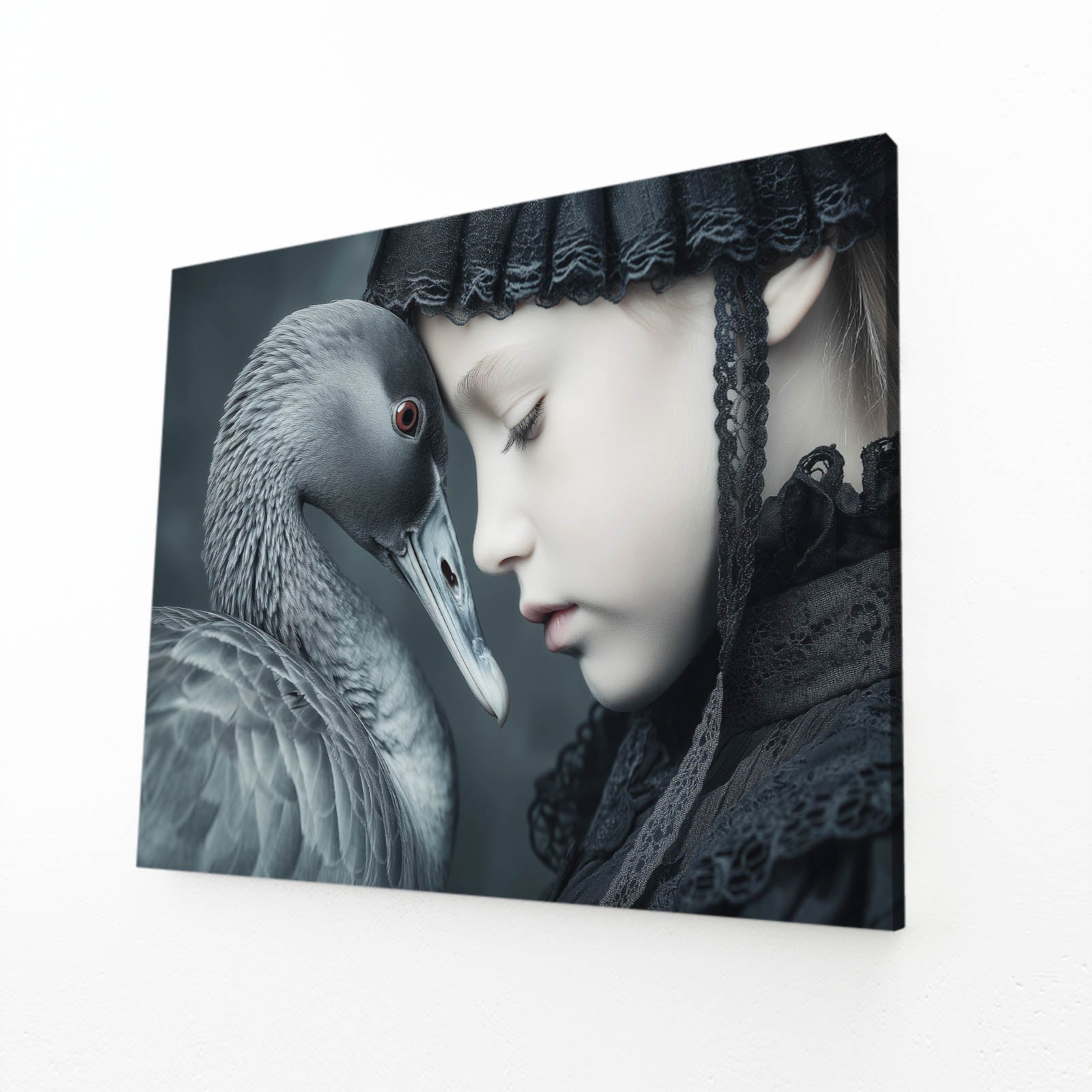 Delicate and poetic, this Photography Wall Art Black captures an unforgettable moment of connection between innocence and nature. The composition, in graceful monochrome tones, reveals a profound balance between emotion, beauty, and stillness.