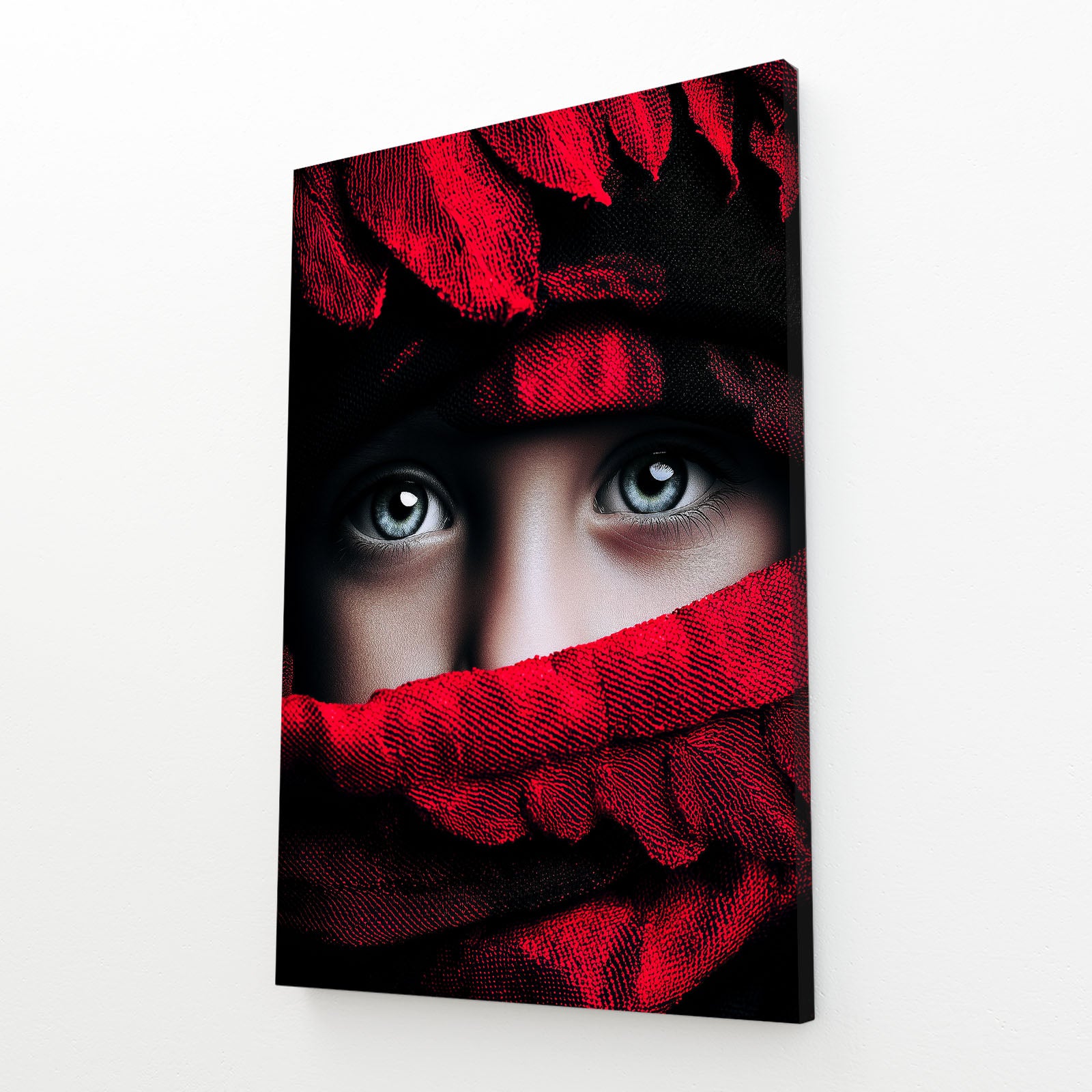 Mysterious and magnetic, this Print Photography captures the pure essence of emotion, depth, and visual storytelling. The striking contrast between deep red tones and luminous eyes creates a powerful focal point that instantly draws the viewer into its captivating world.