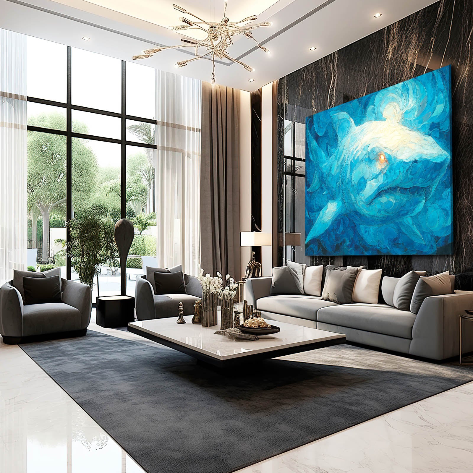 Created for collectors who appreciate powerful marine imagery and expressive abstract design, this piece communicates confidence and fearless individuality. It pairs naturally with dark accents and minimal decor, reinforcing a space that feels intentional and strong. The artwork becomes a focal point that defines the room’s character.