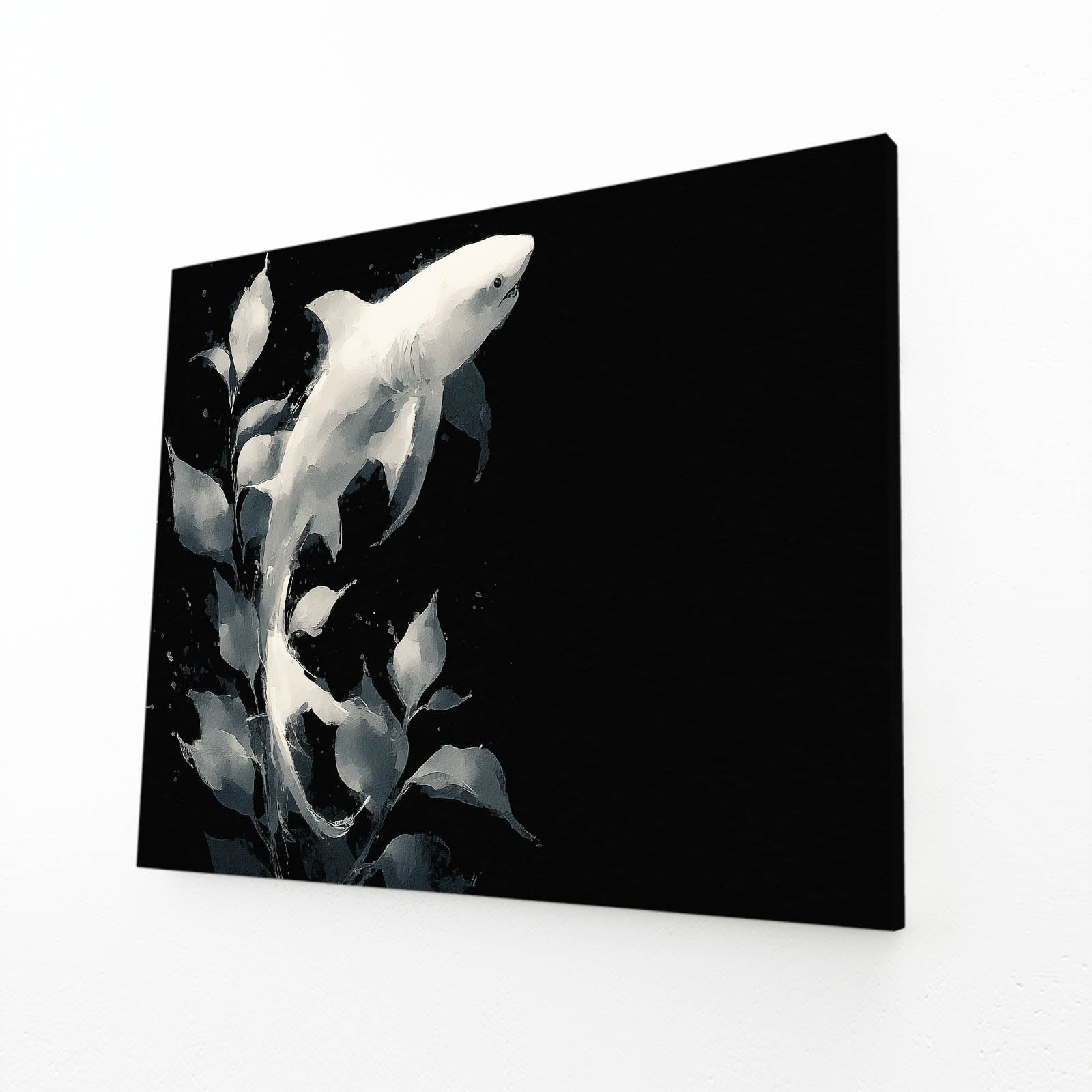 This serene composition introduces a quiet sense of balance and rest, inviting the mind to slow down and breathe. The Bedroom Shark Art appears with a graceful, almost weightless presence, floating gently against a deep, calming backdrop. Its form feels protective rather than intense, creating emotional comfort at first glance. The scene naturally encourages relaxation and ease.