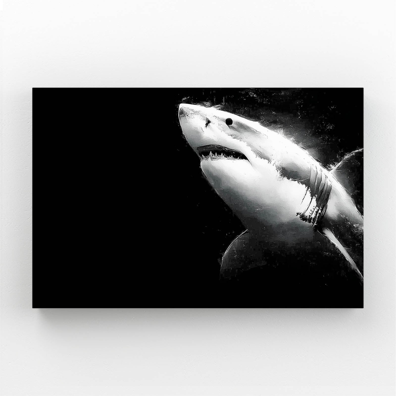 If powerful ocean visuals and bold contrast resonate with your aesthetic, and you wish to explore more artworks that share this dramatic and confident visual language, we invite you to discover the collection by visiting Shark Art Collection.