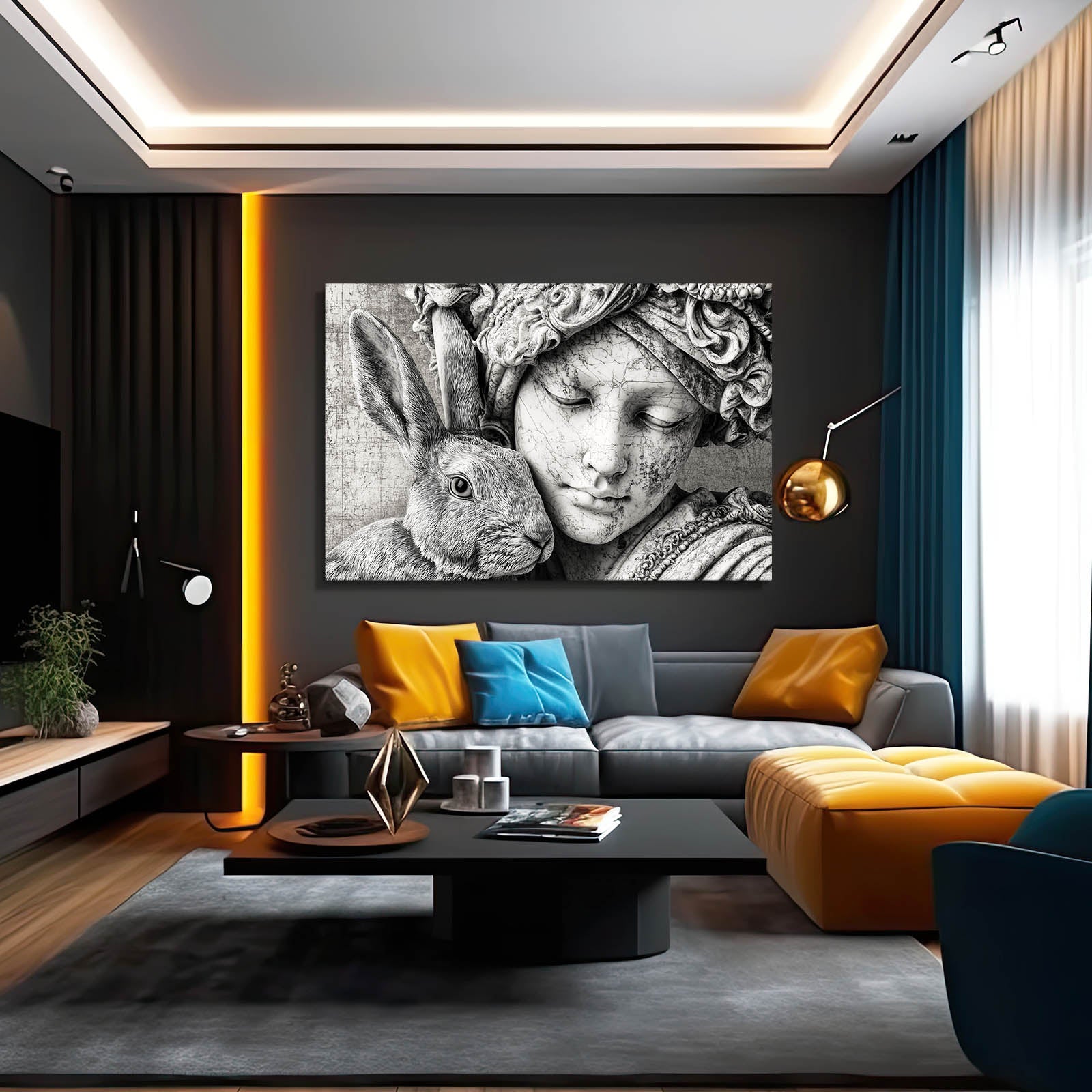 Created to evoke a sense of calm emotion and timeless elegance, this artwork draws you in with its beautifully balanced monochrome aesthetic. Early in the viewing experience, the Rabbit Canvas Wall Art Black And White reveals a poetic blend of soft harmony and artistic presence that naturally captures your attention.