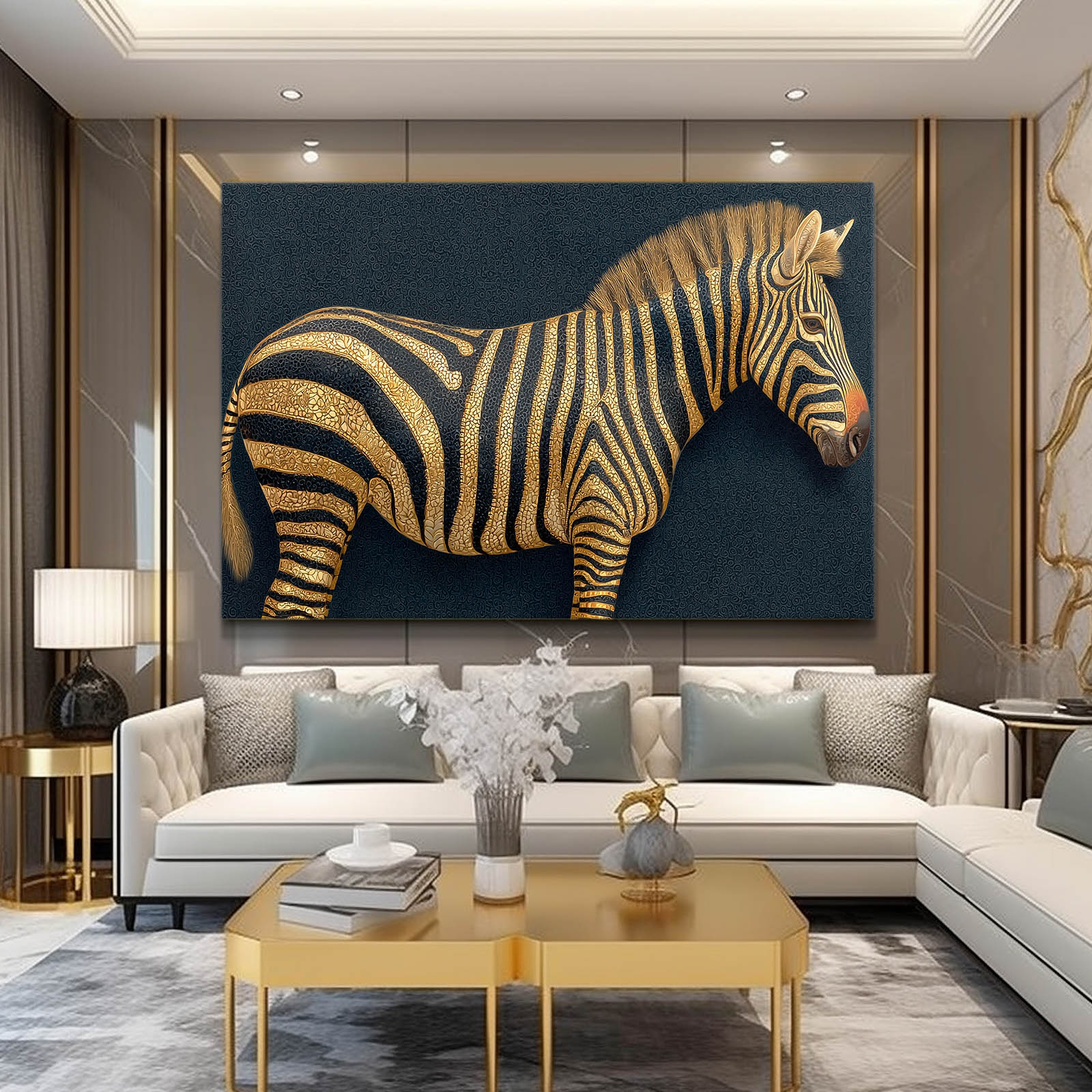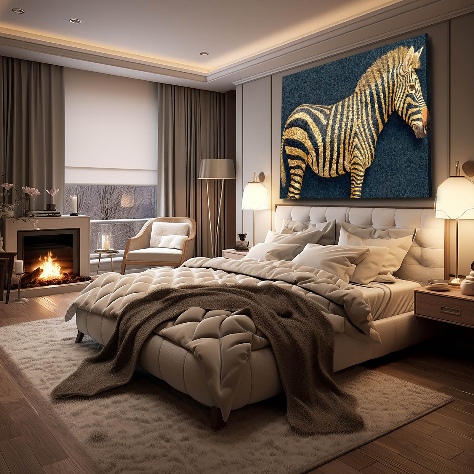 Designed to enhance relaxation and style, this wall artwork introduces Bedroom Zebra Art as a refined focal point that naturally draws the eye. The elegant combination of golden zebra accents against a deep blue background creates a soothing yet confident presence, ideal for spaces meant to restore balance and comfort.