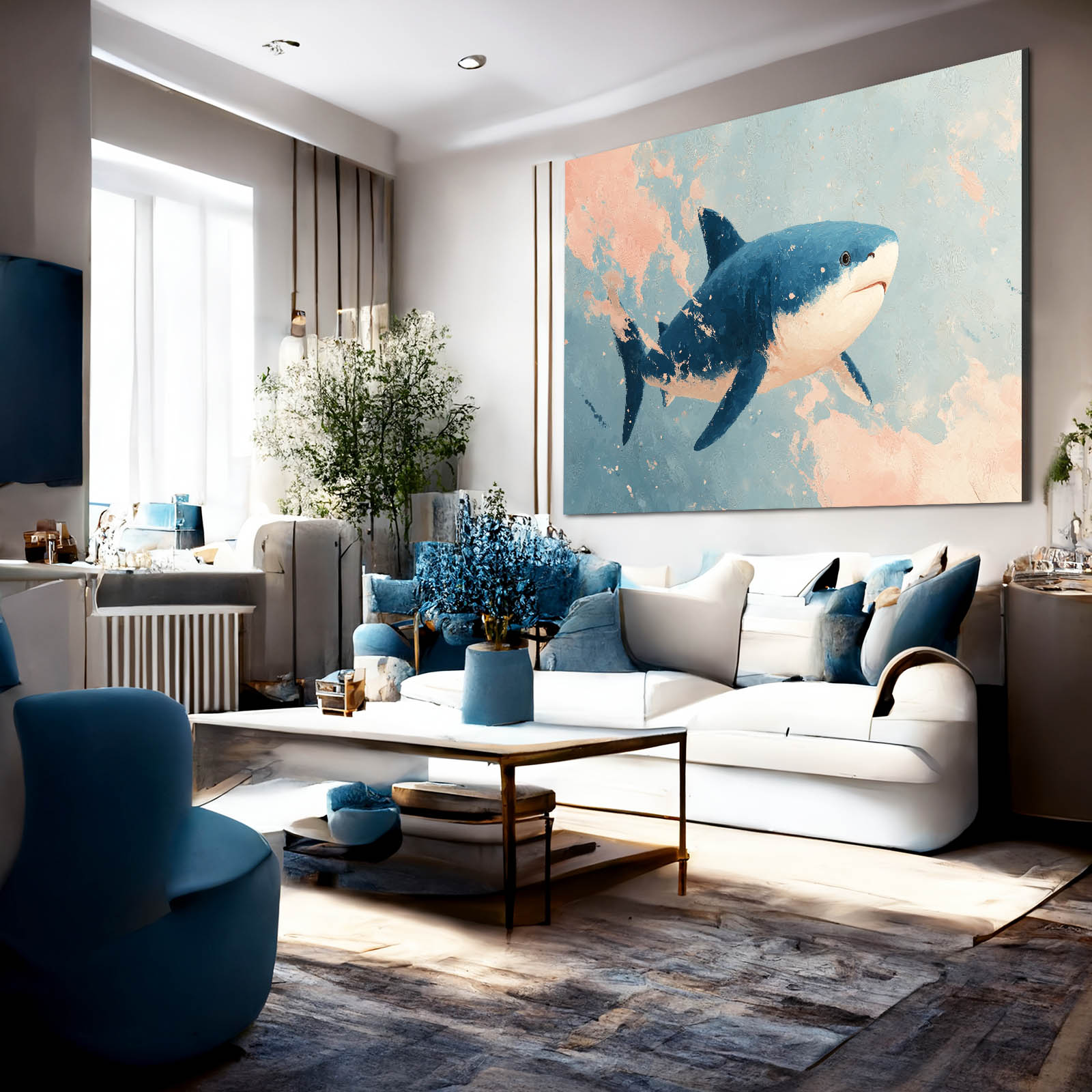 To complete a cohesive and uplifting interior atmosphere, discover more calming and expressive designs by exploring our Shark Art Collection.