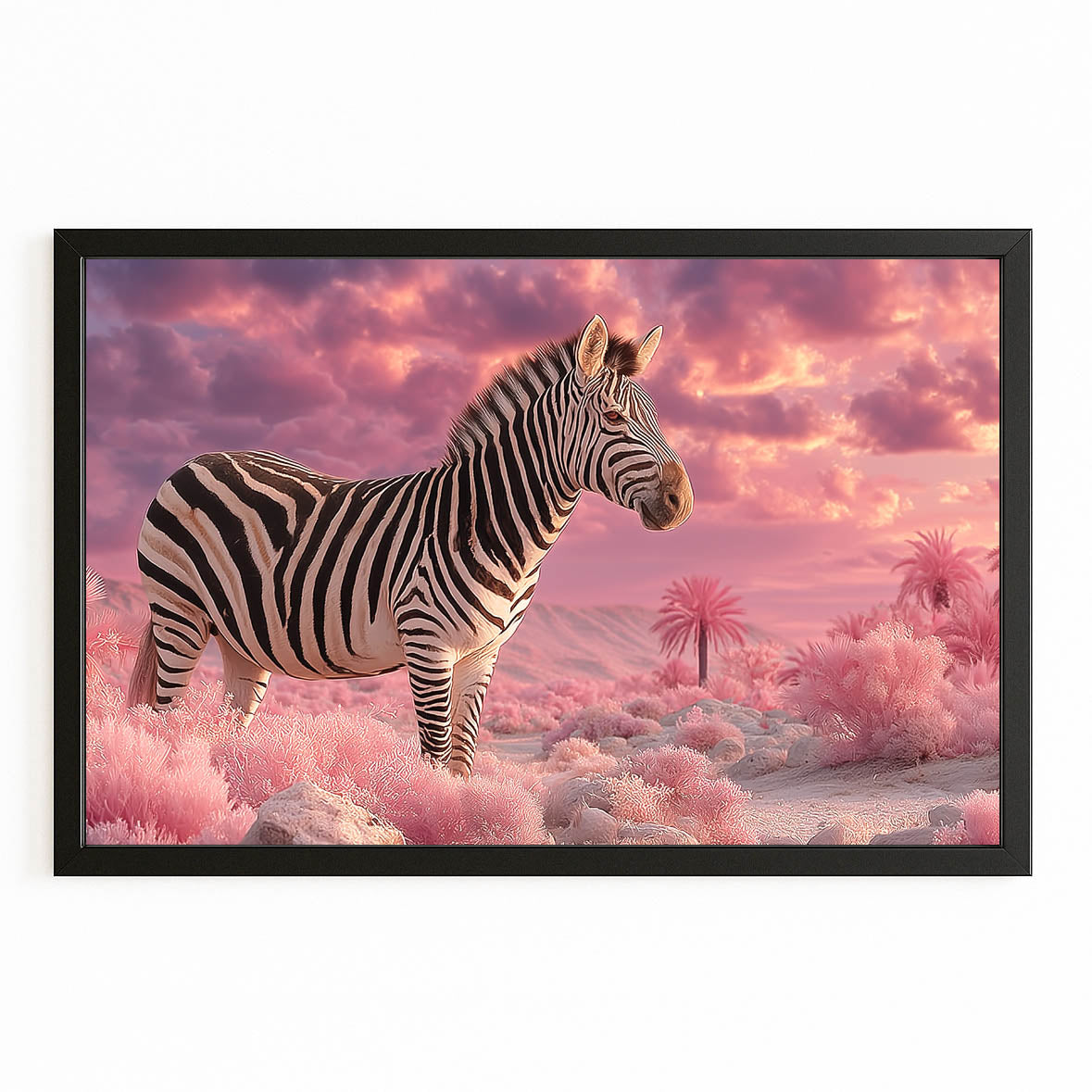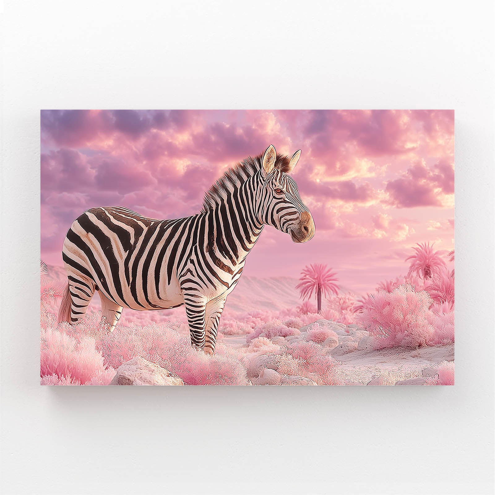 Created to evoke calm imagination, Cloud Zebra Wall Art blends gentle pink skies with the timeless beauty of a zebra standing in a surreal landscape. The scene naturally triggers feelings of peace, wonder, and emotional escape. It feels like a quiet moment suspended between reality and dream.