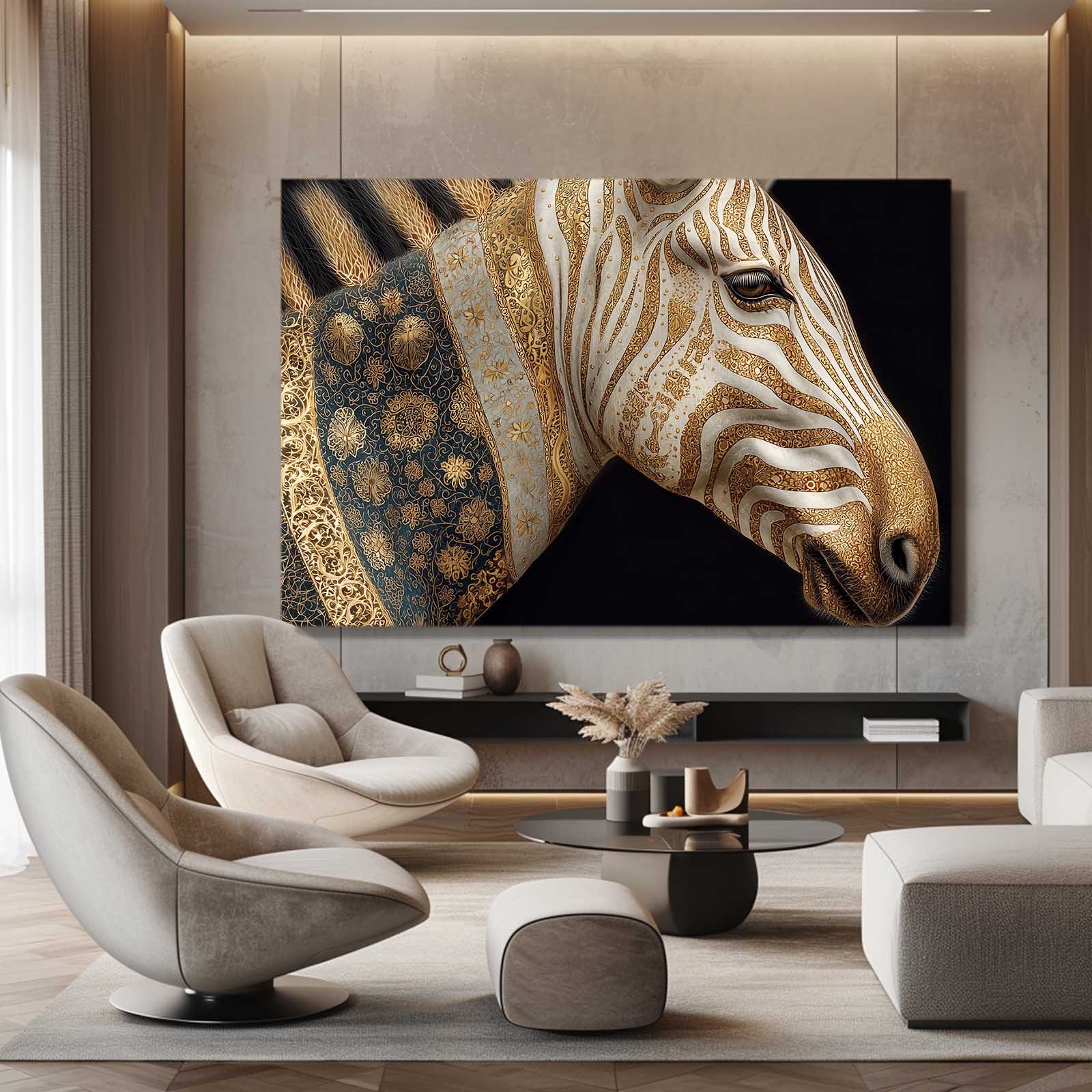 Favored by collectors of zebra wall art, gold animal décor, and exclusive statement pieces, this design reflects discernment and confidence. It subtly reinforces identity and refined aesthetics. A lasting visual investment with emotional depth.