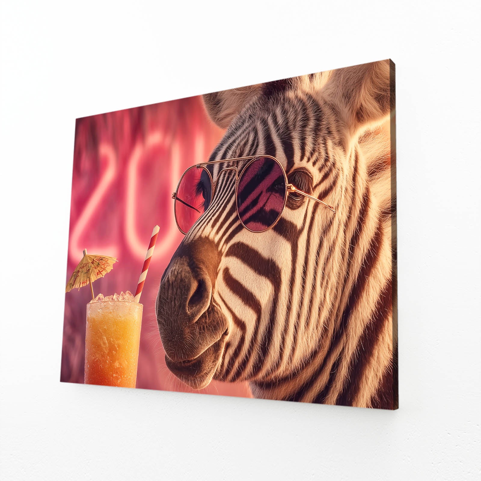 Designed to spark instant connection, Cool Zebra Wall Art blends urban charm with a relaxed, stylish mood. The zebra’s expressive pose, paired with vibrant pink lighting and warm tones, naturally draws attention. This visual storytelling activates curiosity and a sense of fun.