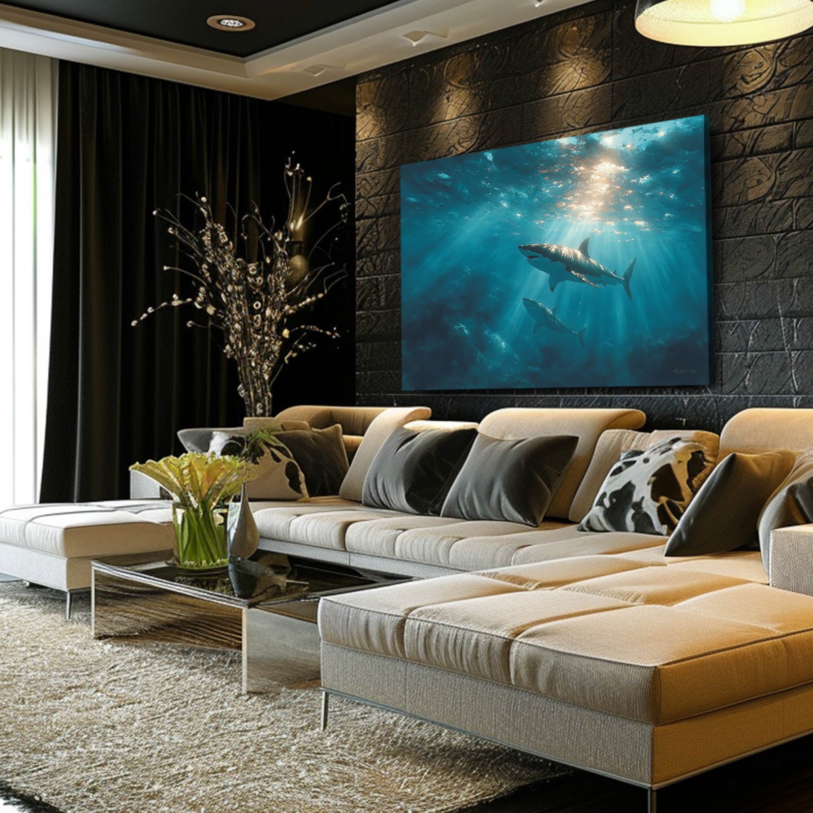 If ocean light, depth, and refined marine energy resonate with your space, explore our thoughtfully curated shark art collection, where complementary designs bring harmony, motion, and timeless presence into beautifully styled interiors.