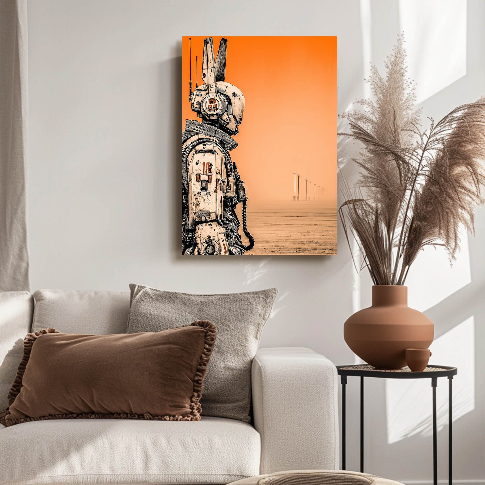 Step into a world where imagination meets futuristic style as this striking creation, Cyberpunk Bunny Rabbit Wall Art, instantly captures your attention with its bold sci-fi mood and powerful presence. The warm orange backdrop amplifies a feeling of mysterious atmosphere, while the detailed cyber-suit adds modern intensity and intriguing character. Its strong silhouette inspires a sense of adventure that naturally energizes any room.